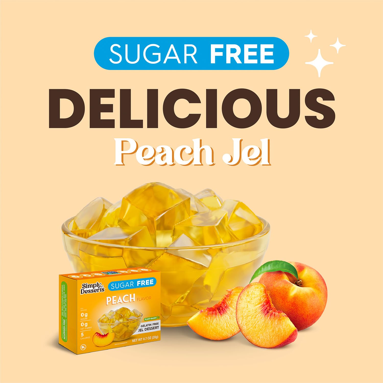 Simply Desserts Sugar-Free Peach Jel, 6-Pack – Vegan Dessert, Keto Snacks, Diabetic Friendly & Kosher, 1.7 Oz Ea