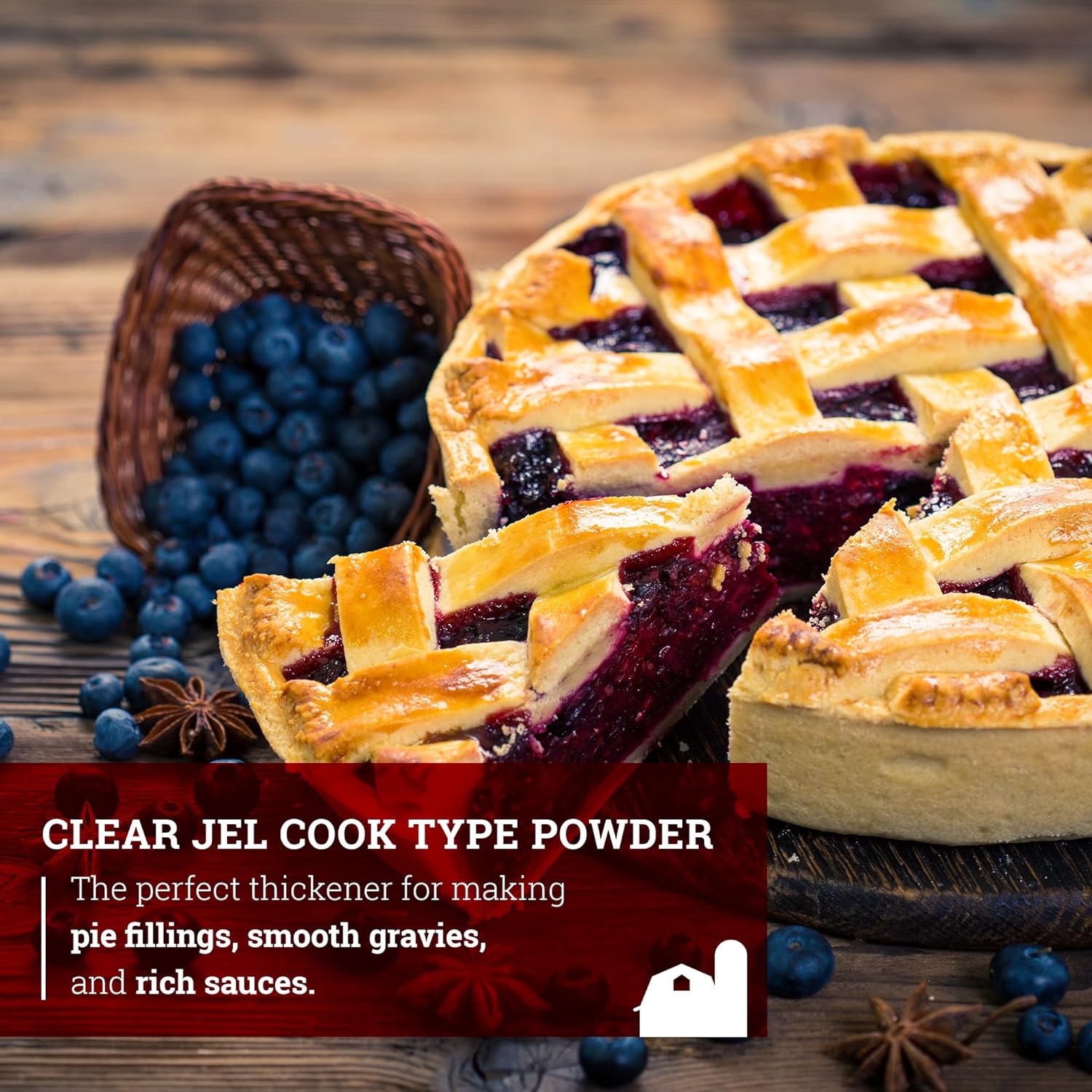 - Hoosier Hill Farm Clear Jel is a modified cornstarch that aids in thickening a variety of recipes. Our classic cook-type formulation has a great tolerance for high temperatures. This makes it ideal for canning fruit pie fillings and making smooth gravies and sauces. Clear Jel works well with all types of ingredients, including acidic ones, and has a strong stability during freezing and thawing.