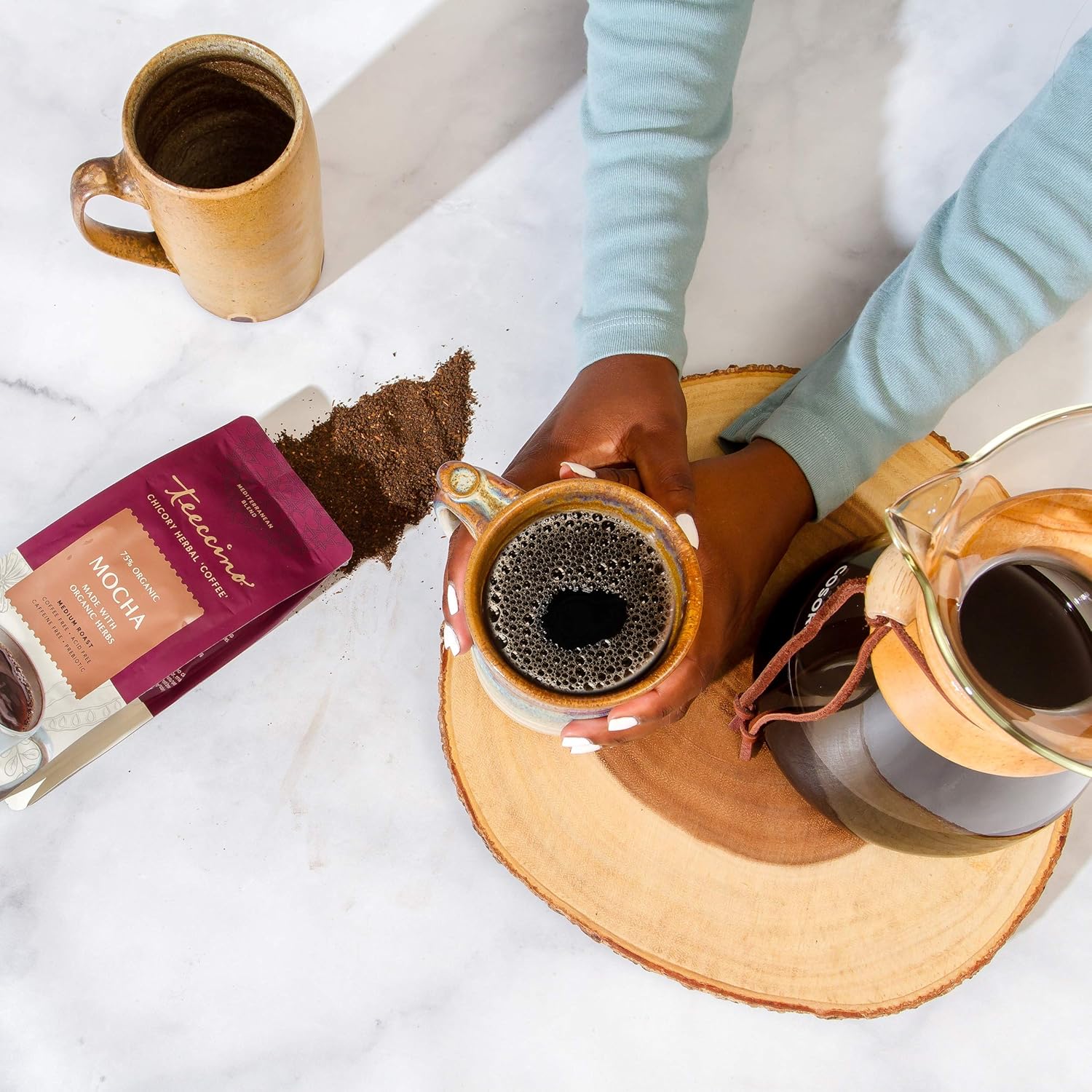 Teeccino Mocha Chicory Coffee Alternative - 11 Ounce - Ground Herbal Coffee That’s Prebiotic, Caffeine-Free & Acid Free, Medium Roast, (Pack of 3)