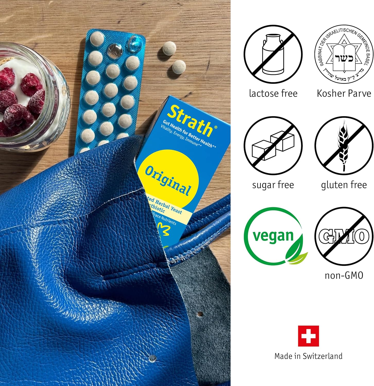 - 61 Different Nutrients - From yeast containing 11 vitamins, 19 minerals and trace elements, 20 amino acids and 11 important building substances. Postbiotics are now being shown to have a wide range of health benefits through improved gut health. Users of Strath, the OG Postbiotic, have known this since 1961!