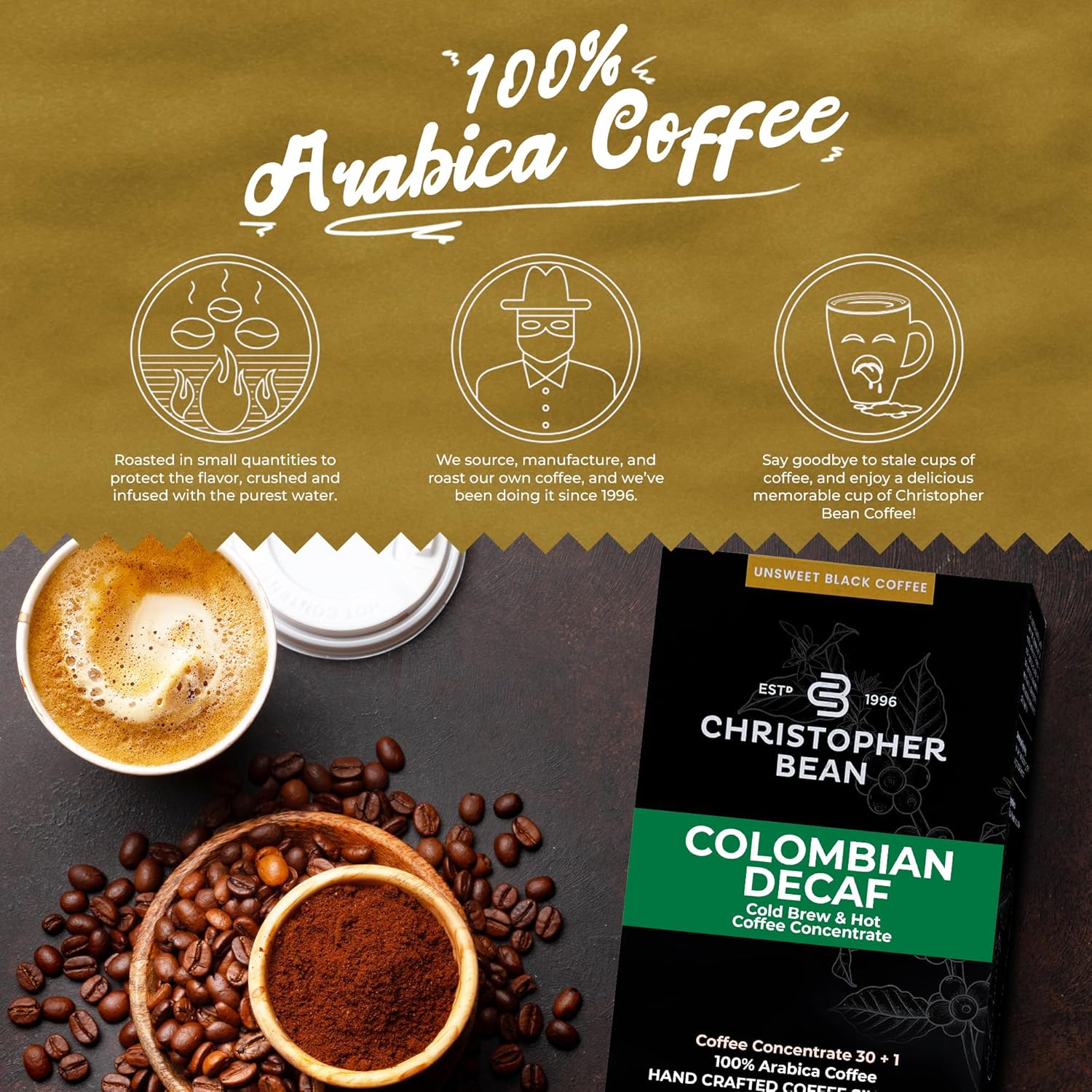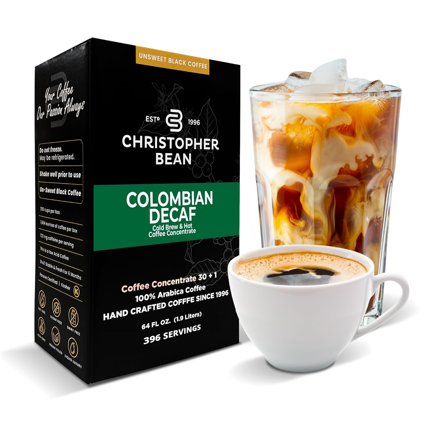 Christopher Bean Coffee - 396 servings, 30 to 1 Blend Bag in Box Liquid Instant Coffee or Cold Brew Coffee Concentrate - Hot or Iced Coffee - Decaf Colombian