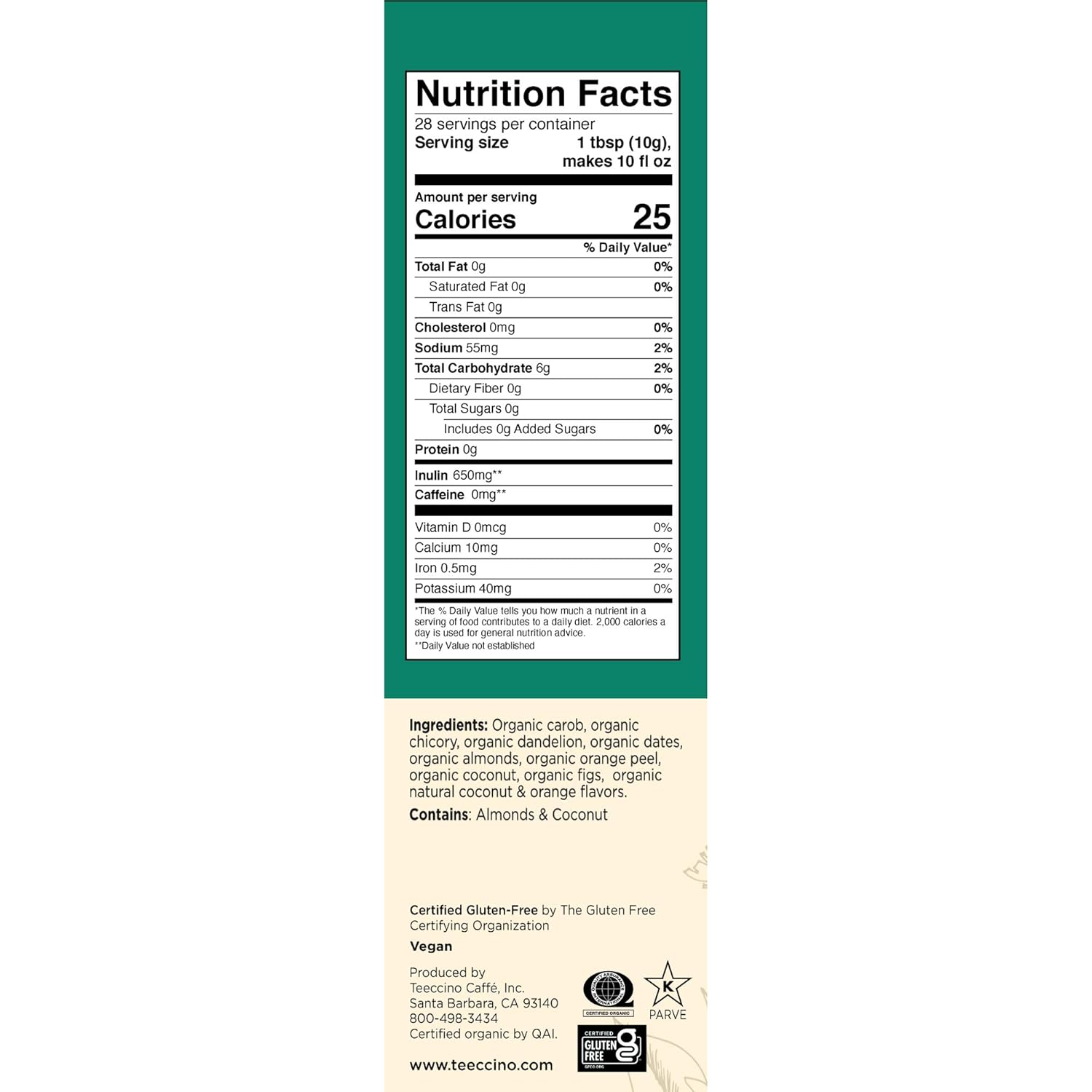 - NATURALLY CAFFEINE FREE - Experience an energy boost from nutrients, not stimulants. Perfect any time of day or night because it won’t interfere with sleep. Sugar-free Teeccino is a treat for the whole family.