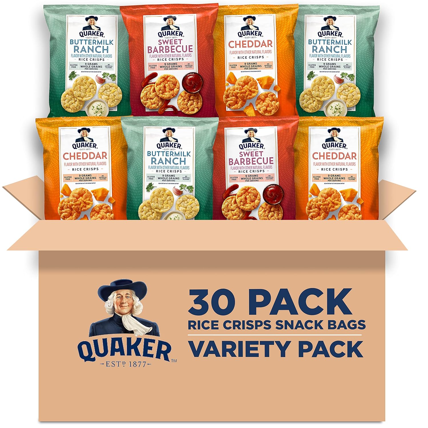 Quaker Rice Crisps, Gluten Free, 3 Flavor, Single Serve, 0.67, Savory Variety Pack, 20.1 Oz,Pack of 30
