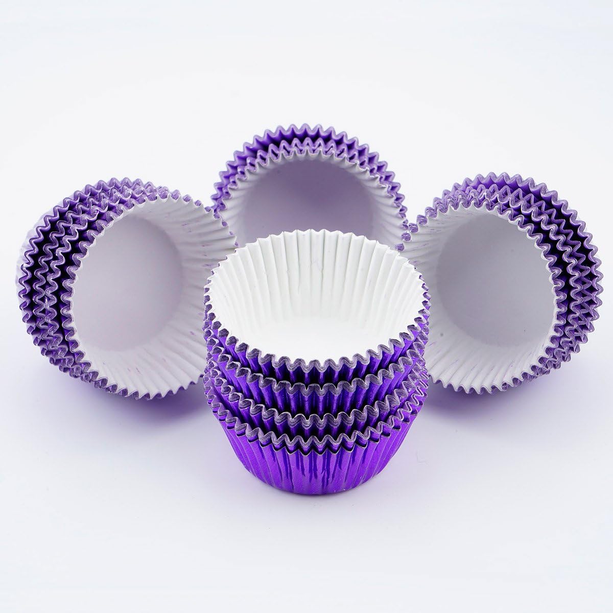 - Pack of 300 violet purple Metallic foil baking cups mini size, about 1.25 inch (3.25cm) bottom diameter