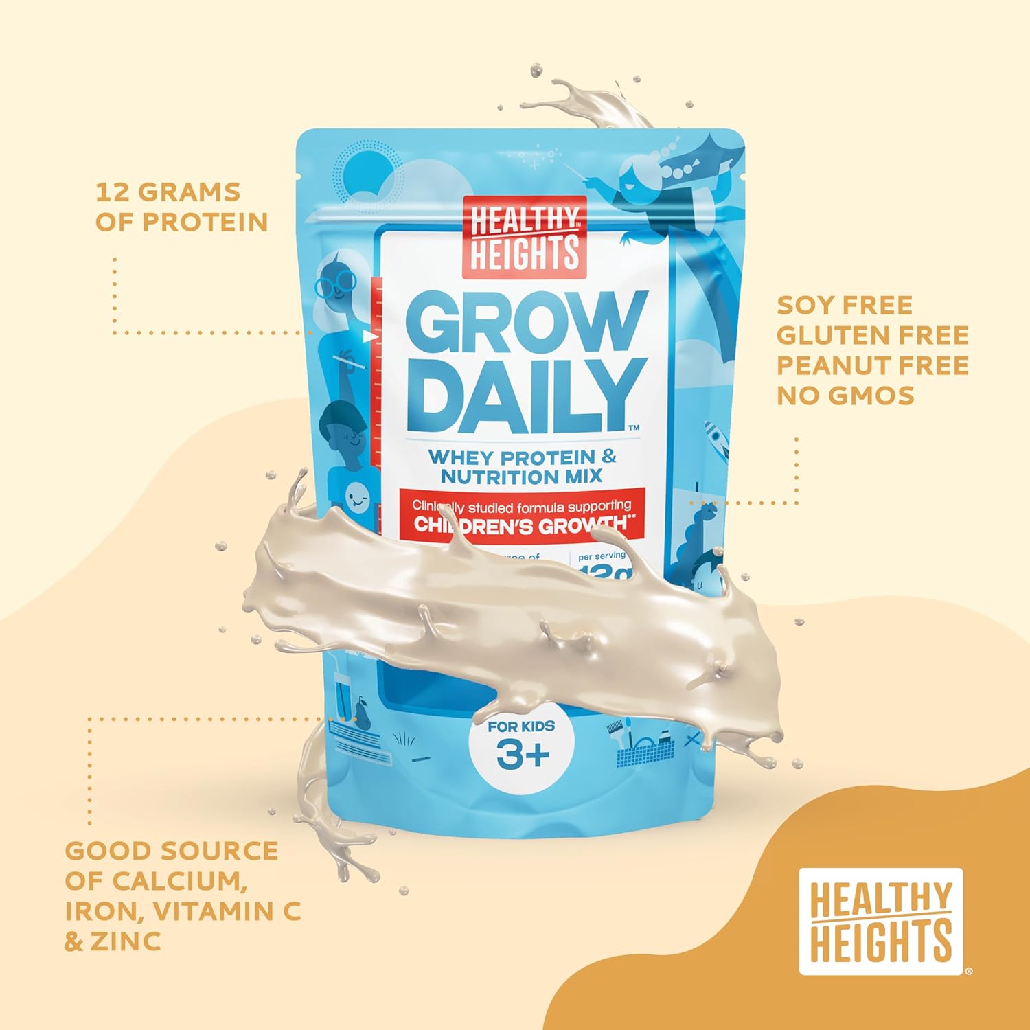 Healthy Heights Grow Daily Kids Protein Drink Mix (Vanilla) - High Protein Shake for Kids 3+
