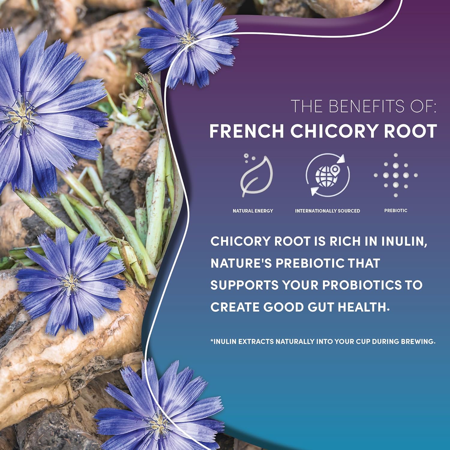- PREBIOTICS FOR GUT HEALTH - Inulin from chicory & dandelion roots is a prebiotic soluble fiber that nourishes probiotics. Each cup supports good digestion with more than 650mg of inulin.