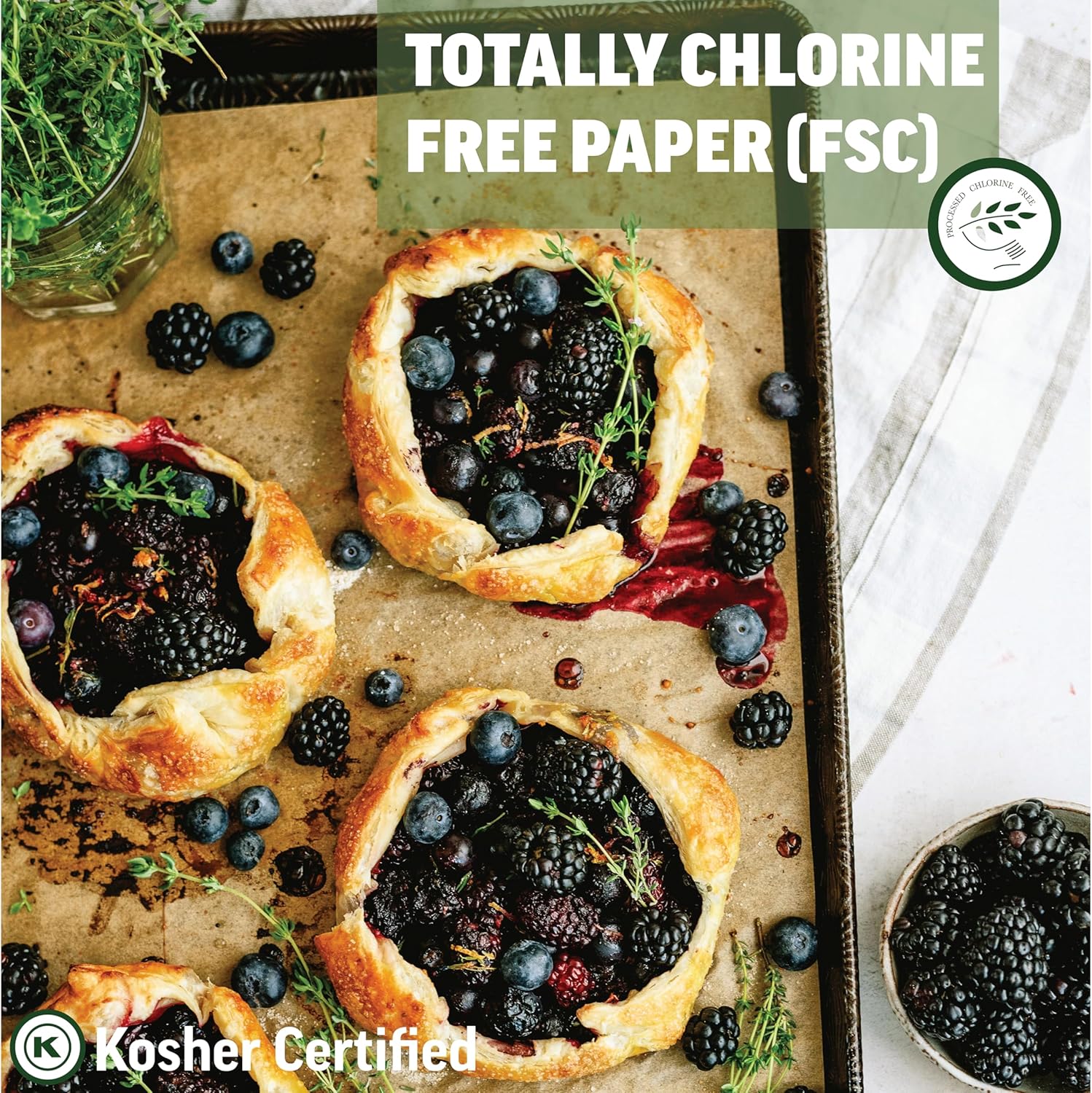 - Zenlogy precut parchment paper is unbleached Totally Cholorine Free (TCF) and Forest Stewardship Council (FSC) certified ensuring that we take part in renewable forest practices to offset environmental impact