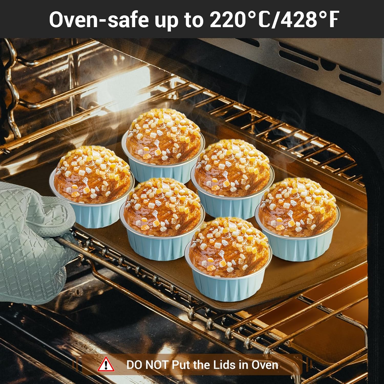 - 【Sturdy Aluminum Foil】-Made from thick sturdy aluminum foil, make our ramekin cups with smoother surface and faster heating,better than using regular baking cups.