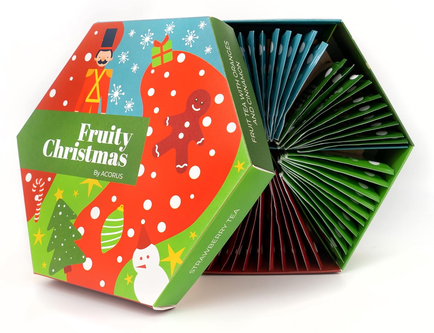 ACORUS Fruity Christmas Tea Set, Fruit Tea Gift Set, 60 Assorted Tea Bags Variety Pack, Fruit Tea Sampler, Specialty Tea Bags Individually Wrapped, Tea Gifts for Women, Men, Tea Lovers