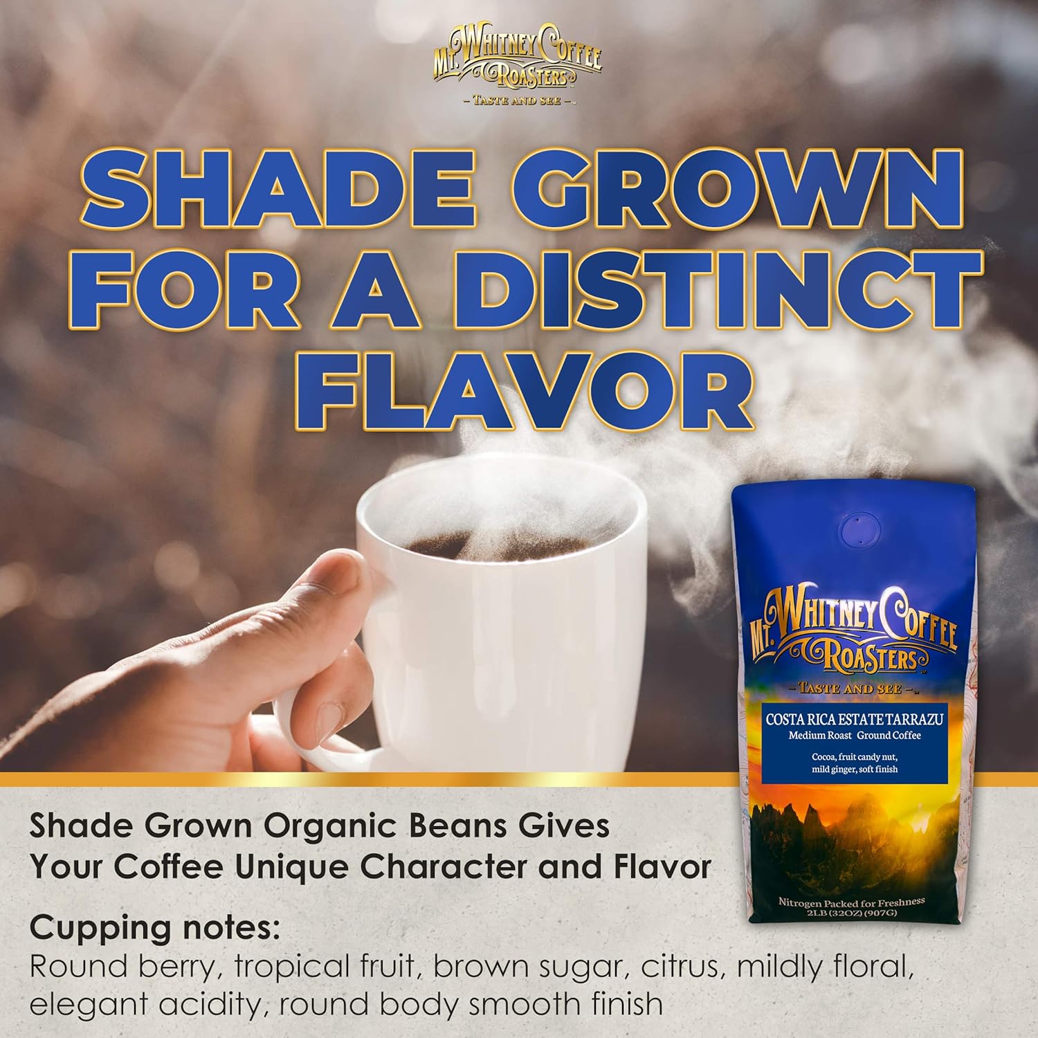 - SINGLE ORIGIN FOR SUPERIOR TASTE & QUALITY - Mt. Whitney’s Costa Rica Estate Tarrazu is a single-origin coffee, composed of a single crop. Single-origin coffees accentuate certain flavor attributes specific to a region, and are of superior taste and quality.
