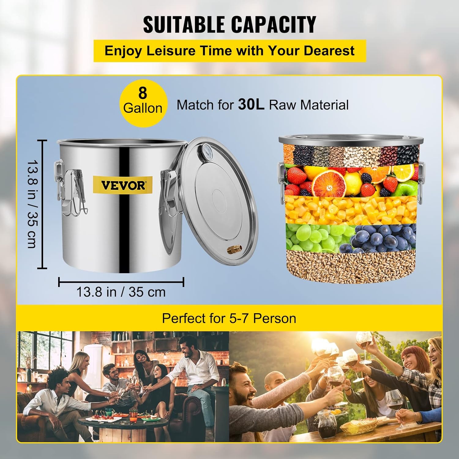 VEVOR Alcohol Still 8Gal/30L Alcohol Distiller Stainless Steel Distillery Kit for Alcohol With Copper Tube & Pump Home Brewing Kit Build-in Thermometer for DIY Whisky Wine Brandy