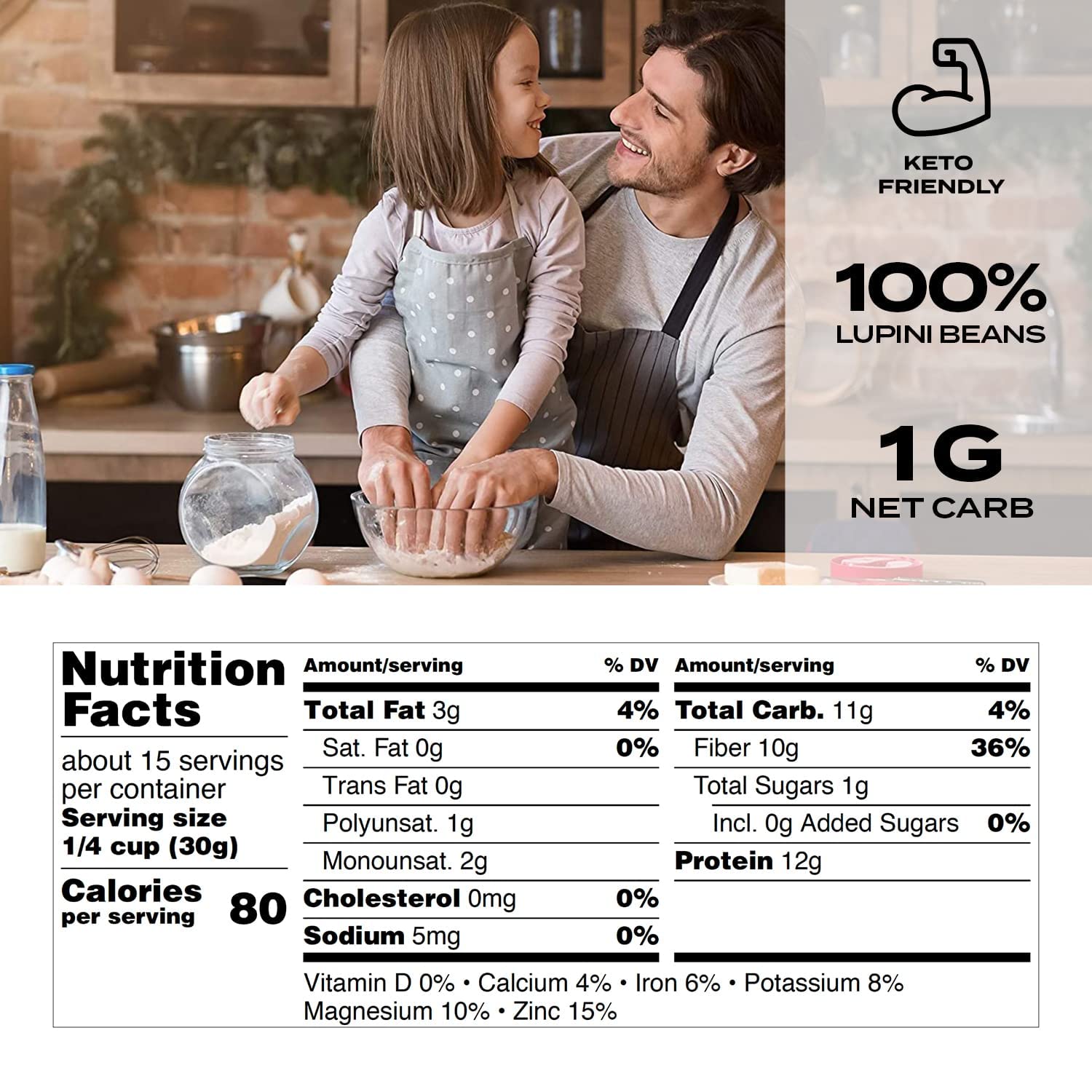 - 𝐋𝐎𝐖-𝐂𝐀𝐑𝐁 & 𝐃𝐄𝐋𝐈𝐂𝐈𝐎𝐔𝐒 – Lupini Flour is an ancient superfood that is rich in dietary fiber, protein and minerals including Potassium, Magnesium, Calcium, Iron, Zinc, and Vitamin C! This low-carb food is extremely high in protein while being low calorie. Therefore, it significantly enhances nutritional content and taste in a variety of foods!