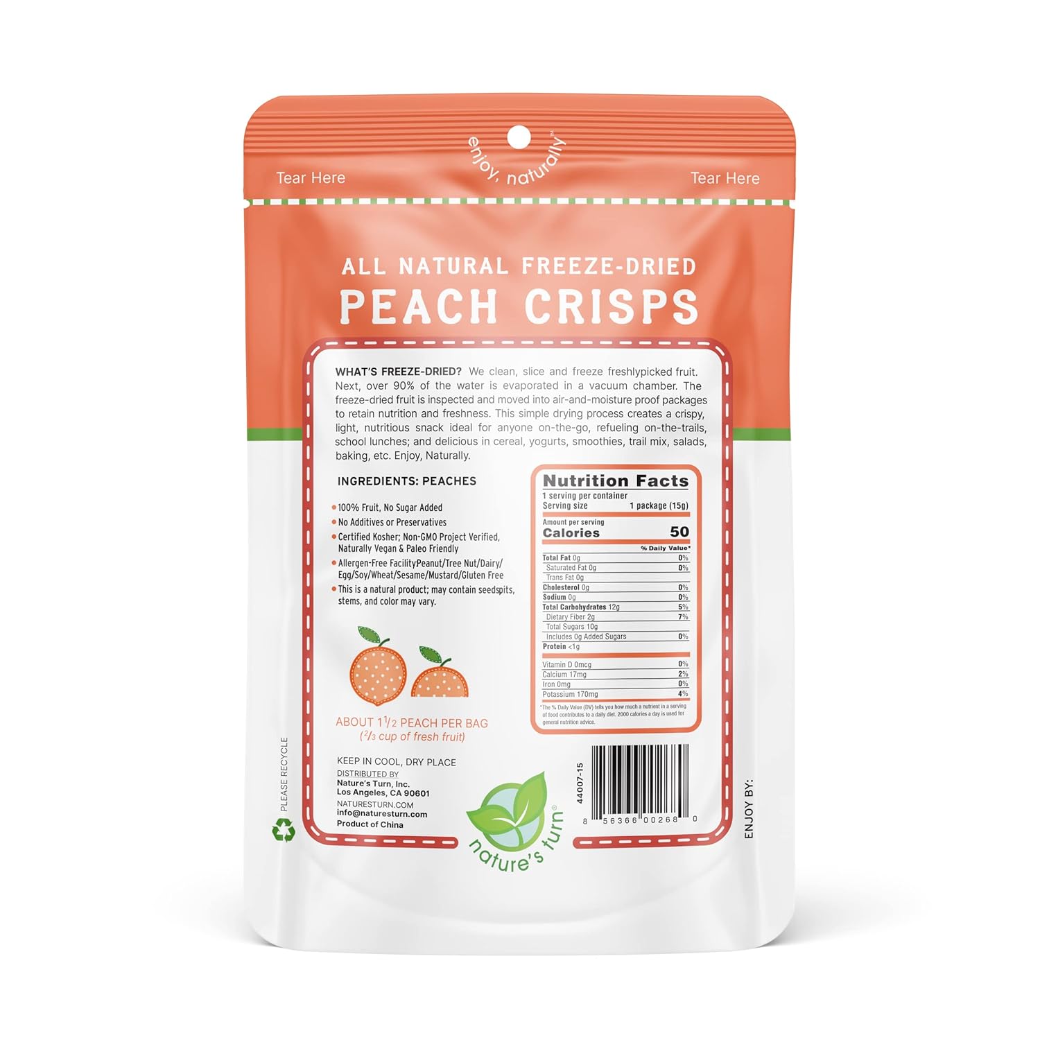 Nature’s Turn Freeze-Dried Peach Crisps – Healthy, Gluten-Free, Crispy & Delicious, Plant-Based Snack, Ideal for Cereal, Smoothies, School Lunches, & On-the-Go, Bags of 6 (0.53 oz Each)