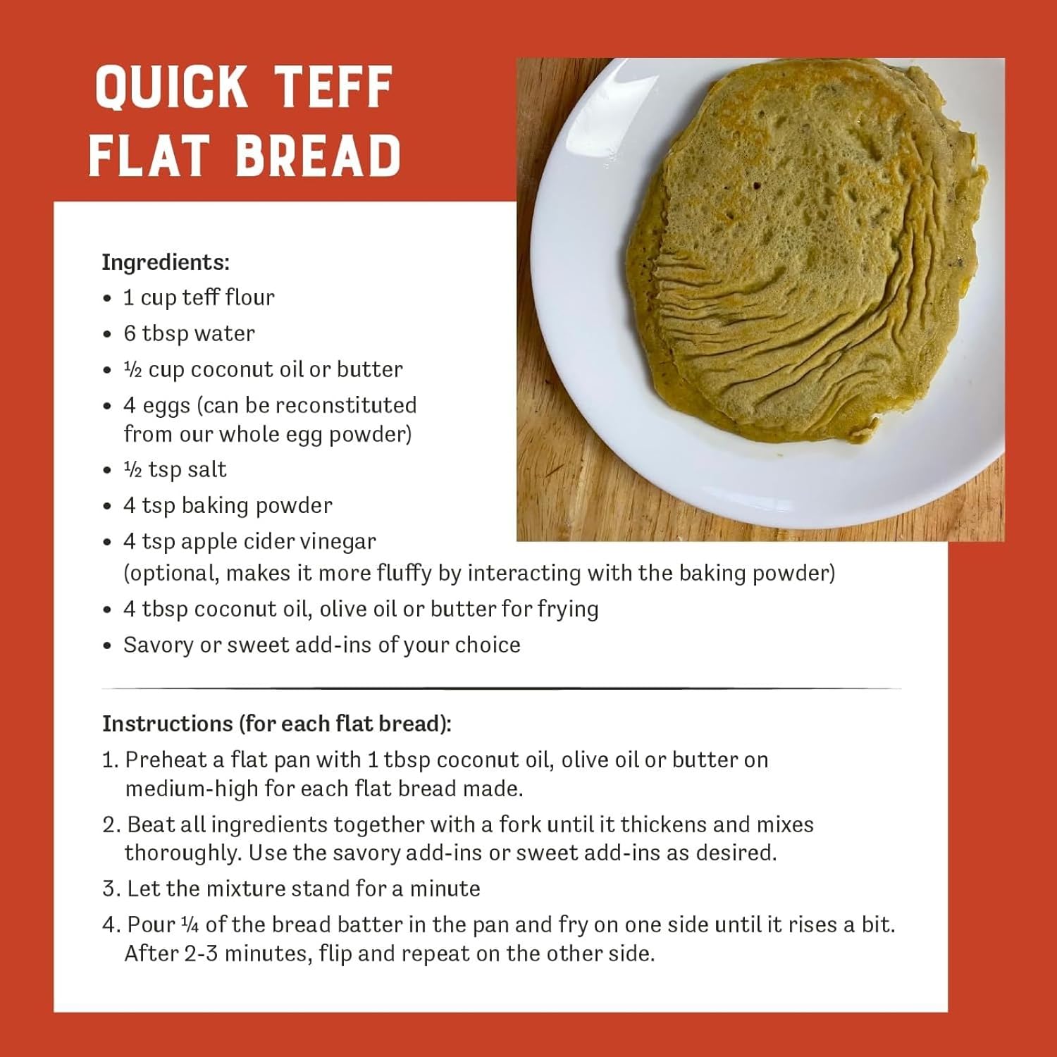 - Ingredients: Ivory Teff Flour