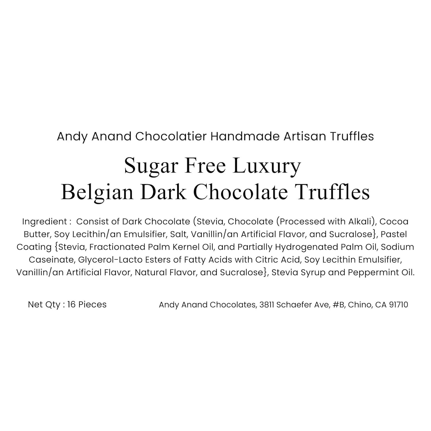 Andy Anand Chocolatier Sugar Free Belgian Dark Chocolate Truffles - Gluten Free & Diabetic-Friendly Chocolate Truffles Gift Box, Assorted Flavors Belgian Truffles With Guilt-Free Indulgence (16 Pcs)