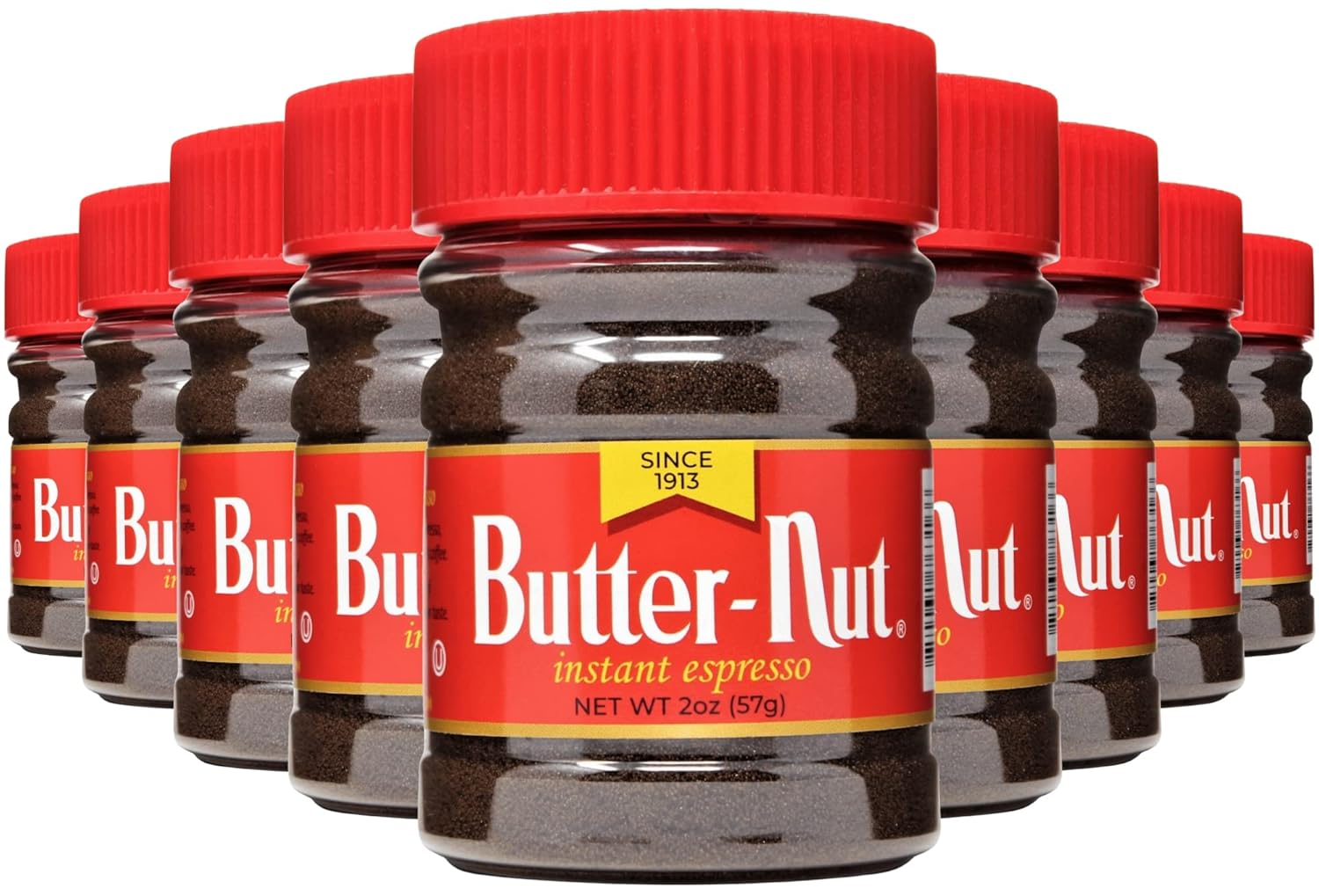 - Rich in Taste - Butter-Nut instant espresso combines a blend of premium coffee beans that are roasted to perfection to achieve a well-rounded traditional espresso flavor that is smooth, dark, and robust with a gentle sweetness and incredible texture having notes of toasted caramel and chocolate