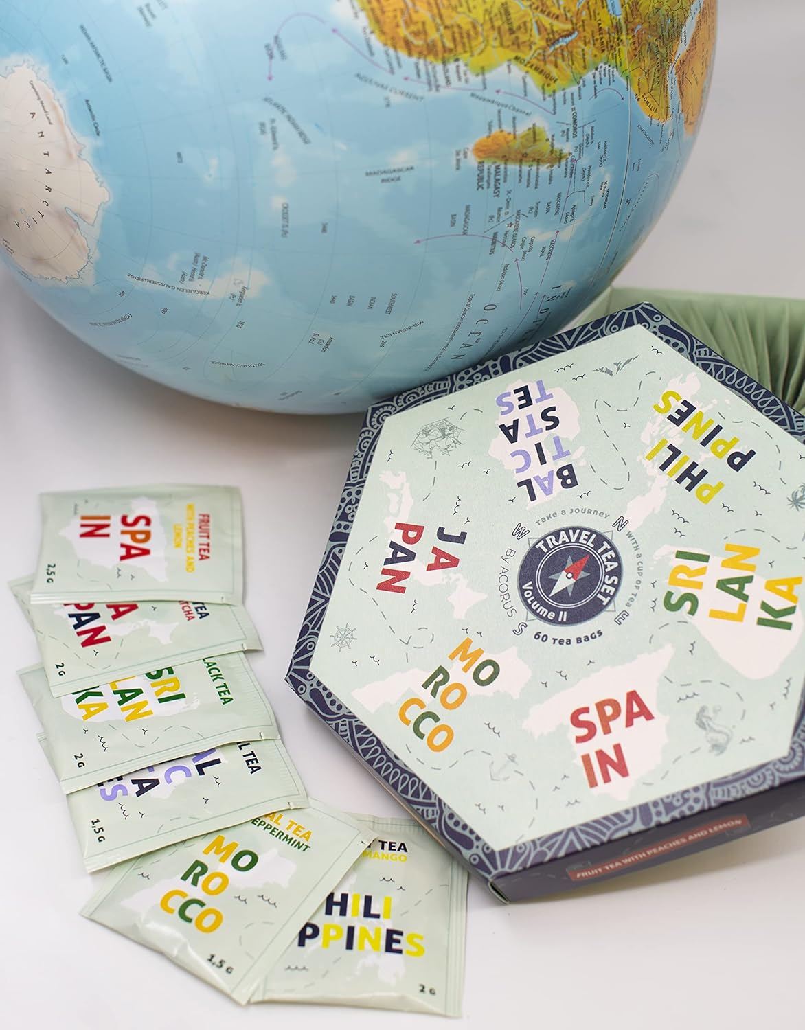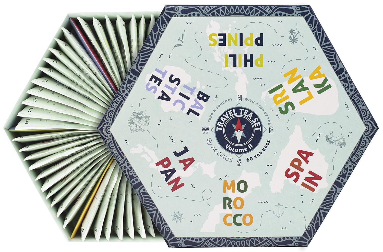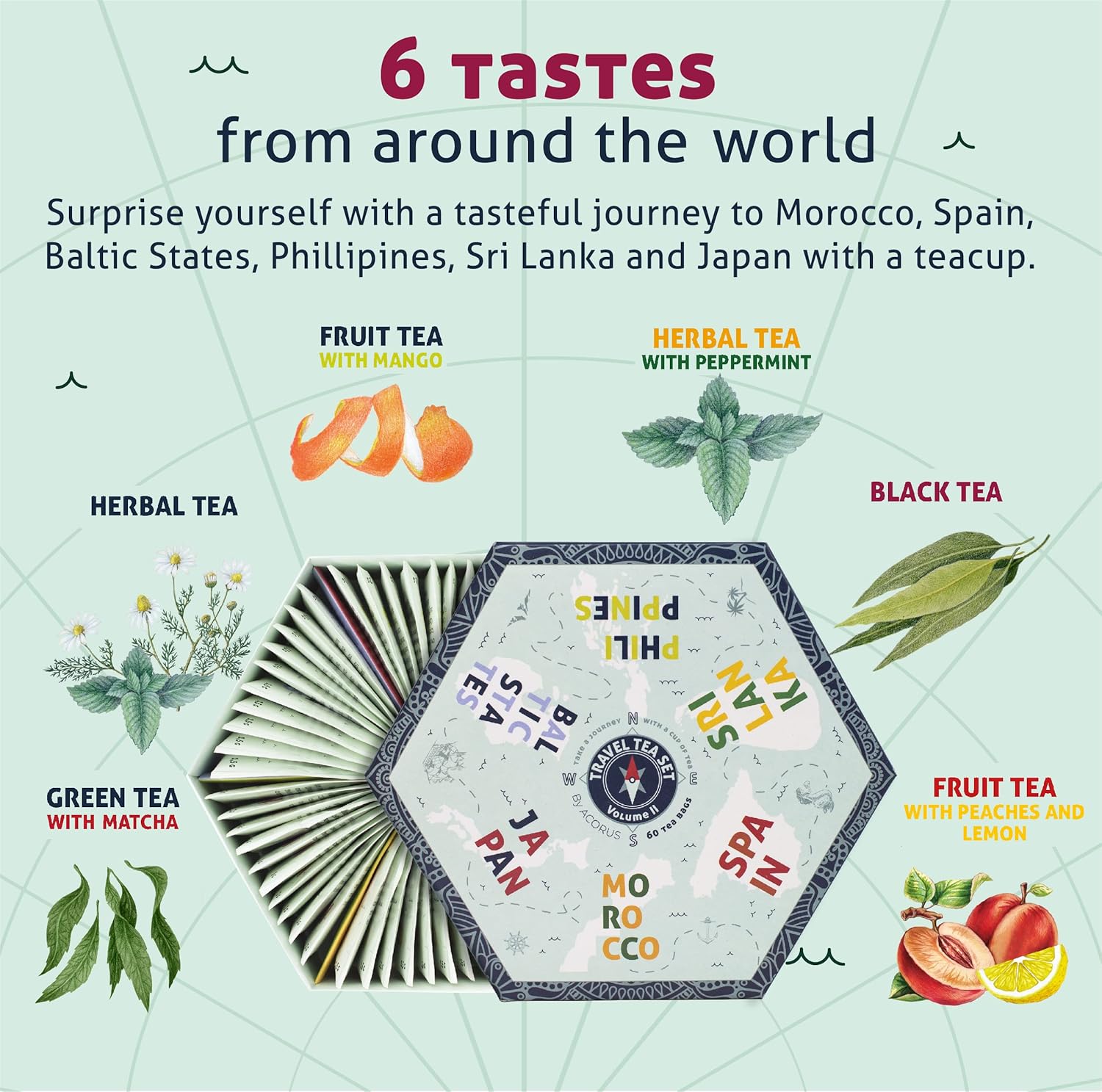 ACORUS | Travel Tea Set Vol. II | Tea Gift Set of 6 Flavors of Different Destination | Discover the World With a Cup of Tea | Assorted Tea Variety Pack | Large Tea Sampler Box | 60 Tea Bags