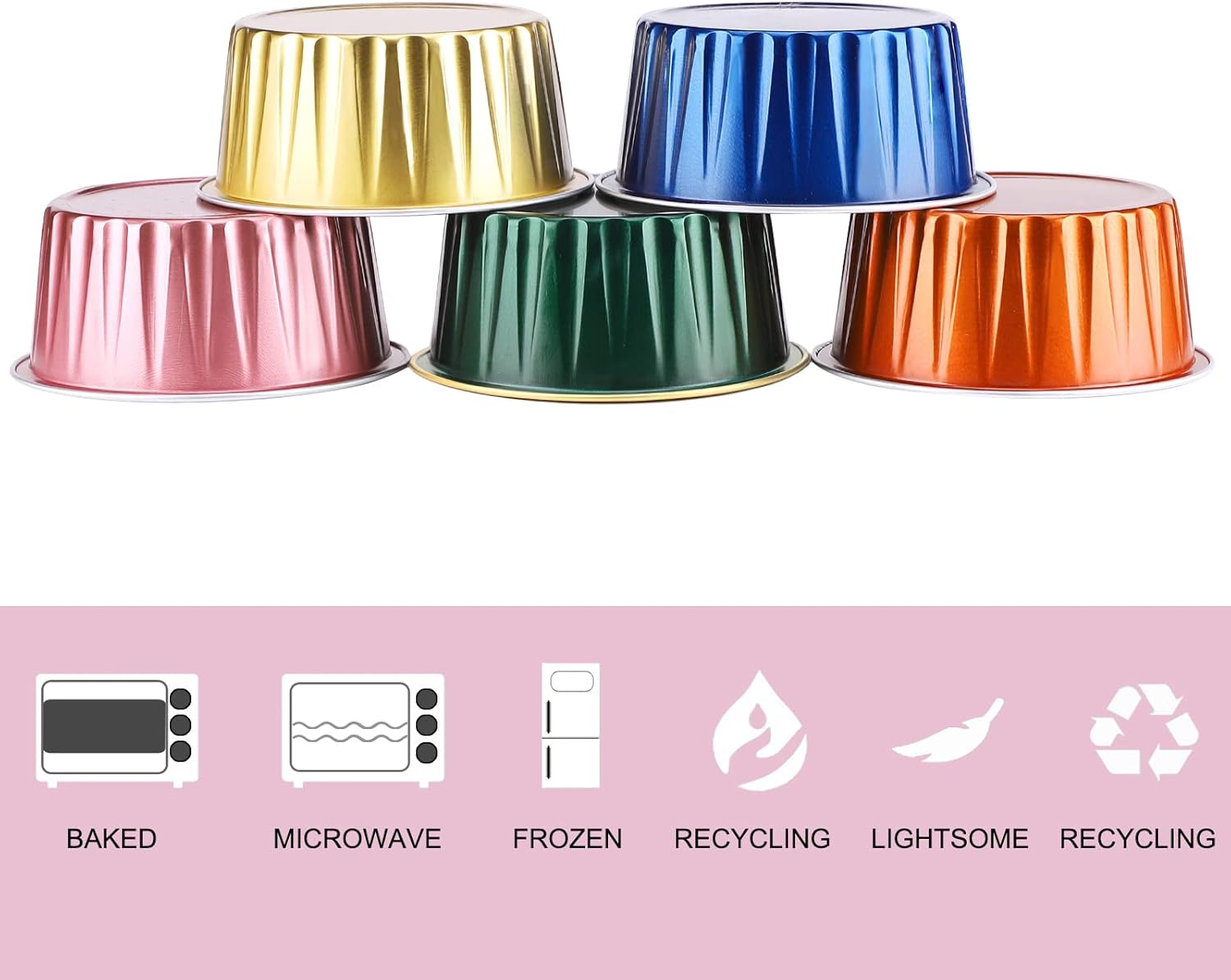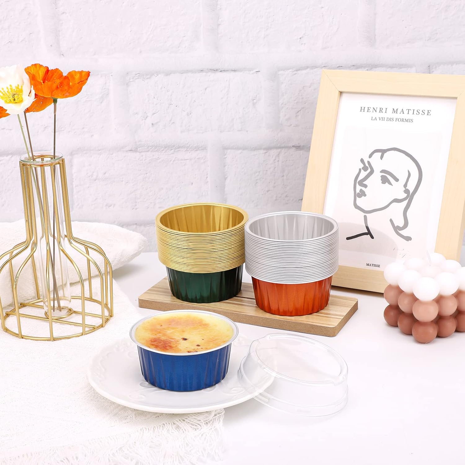 EUSOAR Assorted Colors Cupcake Liners, 5oz 125ml Muffin Liners with Lids Pack of 50, Creme Brulee Ramekins, Disposable Aluminum Foil Cups