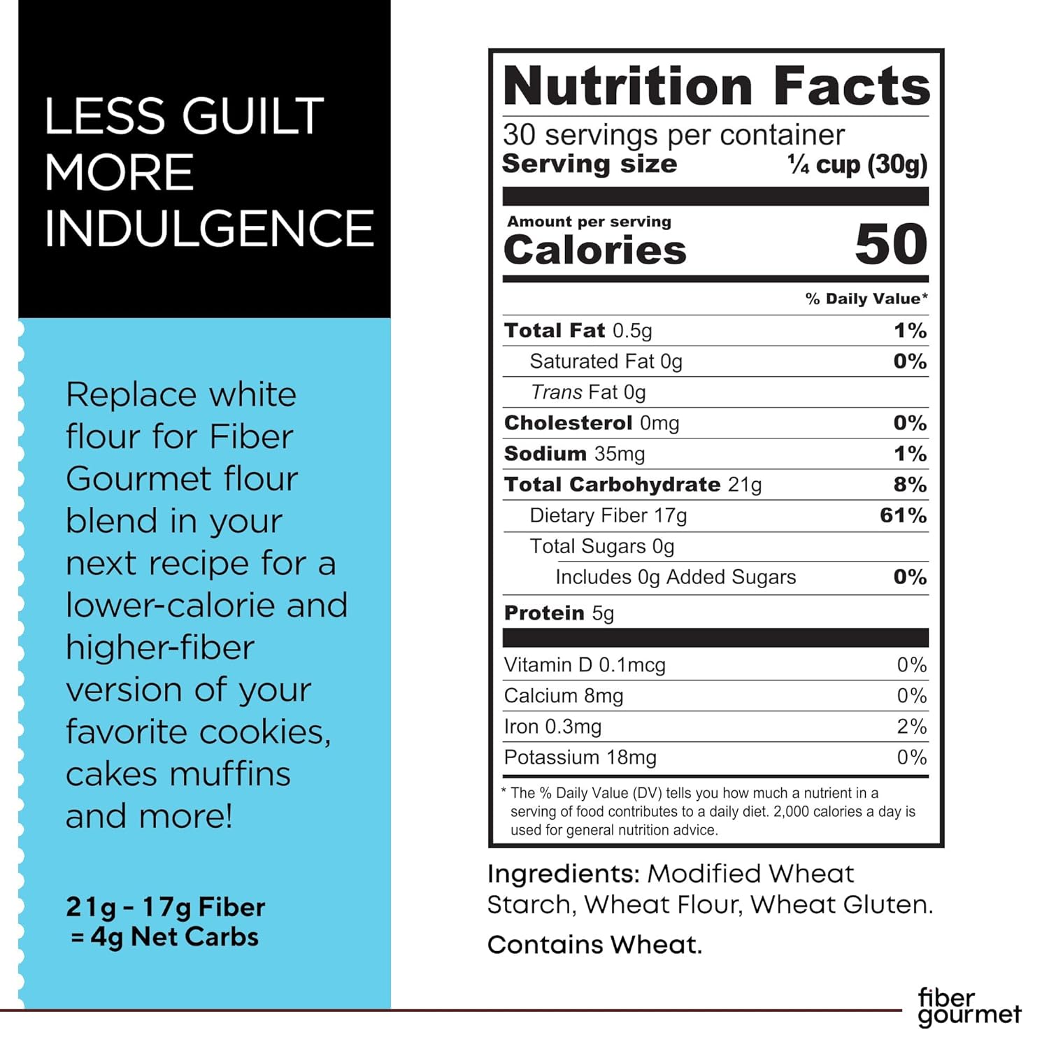 Fiber Gourmet Low Net Carb Flour Blend - Keto Friendly All-Purpose Baking Flour with 55% Fewer Calories, 81% Fewer Net Carbs, 17g Fiber, Non-GMO Vegan - 32 Ounce (pack of 2)