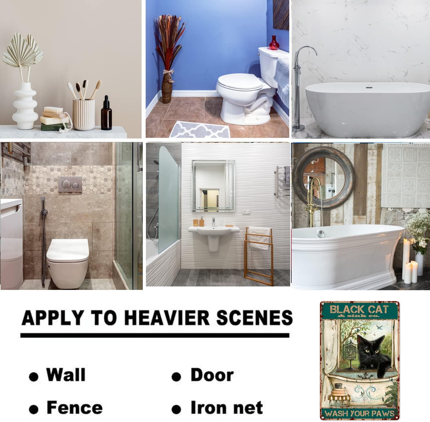 Funny Bathroom Wall Decor Vintage Black Cat Wash Your Paws Tin Sign Office Home Bar Farmhouse Hotel Dining Room Coffee Metal Poster 8x12 Inch