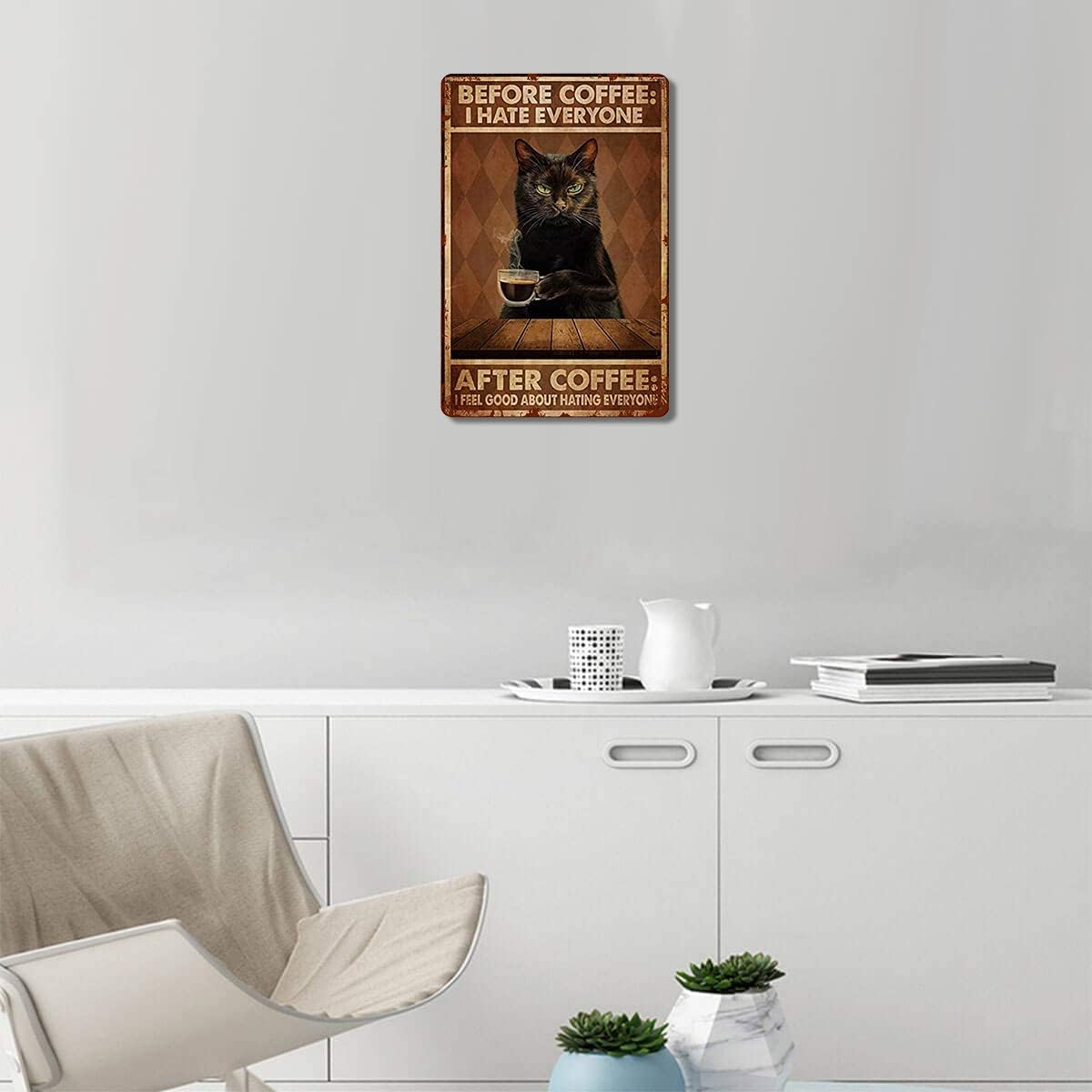 Funny Cat Coffee Metal Tin Sign Vintage Kitchen Signs Wall Decor Home Bar Cafe Decorations Art Poster 8x12 Inch,Before Coffee I Hate Everyone Signs