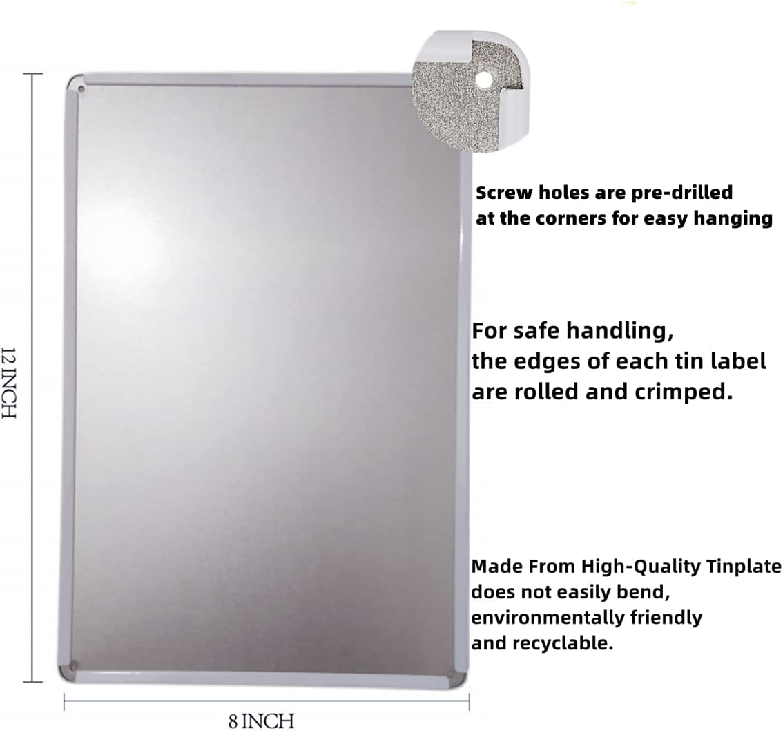 - Size: 8" x 12" (20x30cm). Weight:4.9OZ/139g.These tin signs are made of high quality metal. These eye-catching signs are not easy to bend, harmless, will not rust and fade.It is environmentally friendly and recyclable.