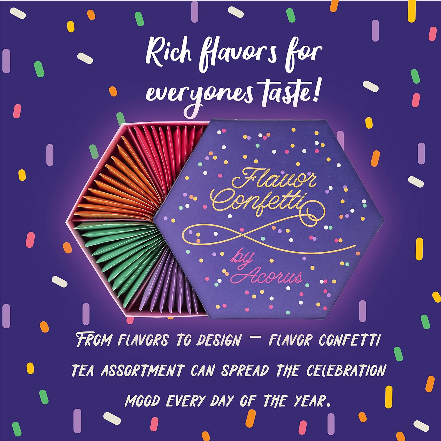 ACORUS | Flavor Confetti Tea Assortment | Natural Fruit and Herbal Tea Gift Set | Celebrate with 6 Different Flavors | Large Selection Tea Set | Tea Box For Various Occasions - 60 Tea Bags