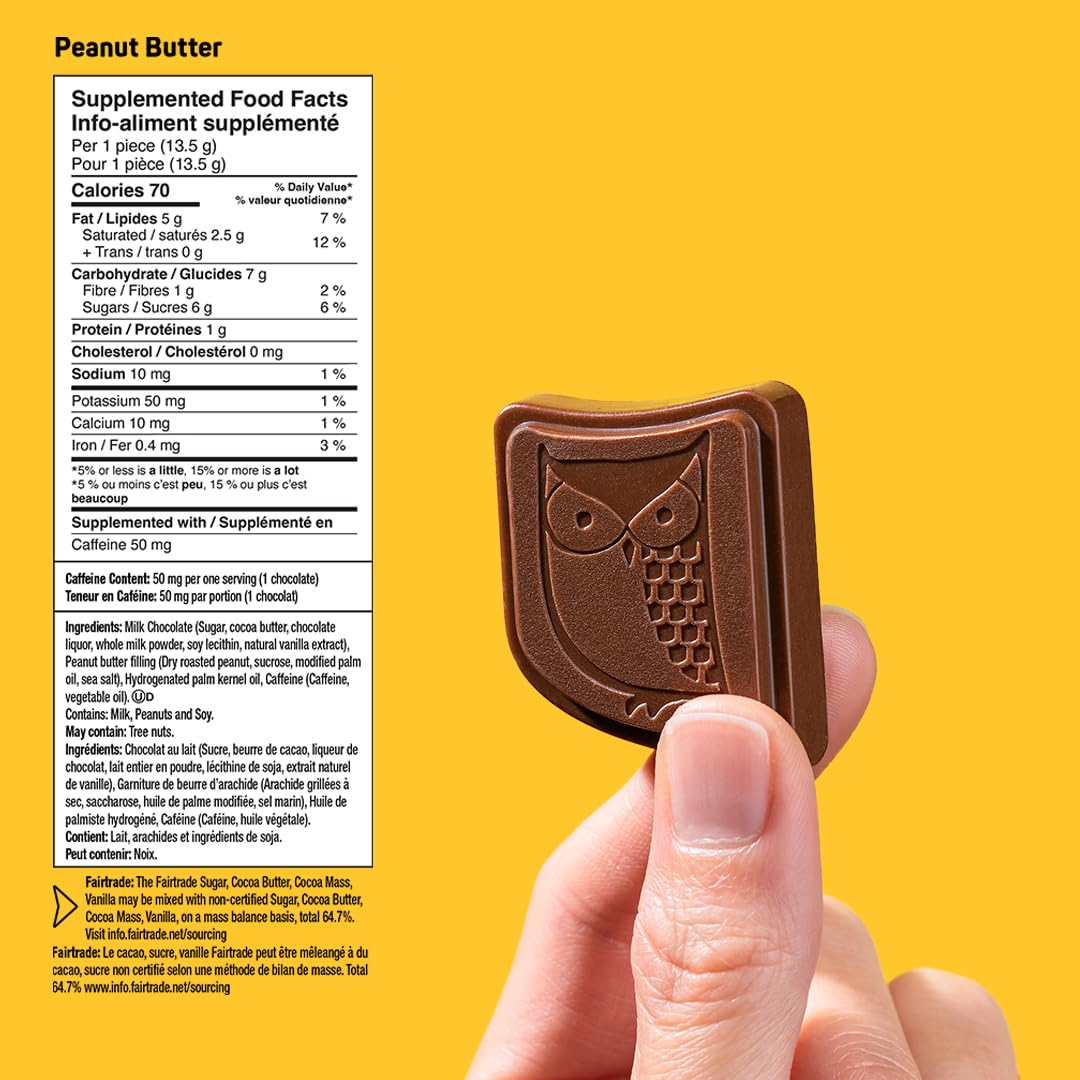 AWAKE - Caffeinated Chocolate Bites - Peanut Butter Milk Chocolate, 50 Bites - 50mg Caffeine - Wrapped Energy Bites - Coffee Alternative - Fairtrade, Gluten Free, Non GMO - 0.48oz