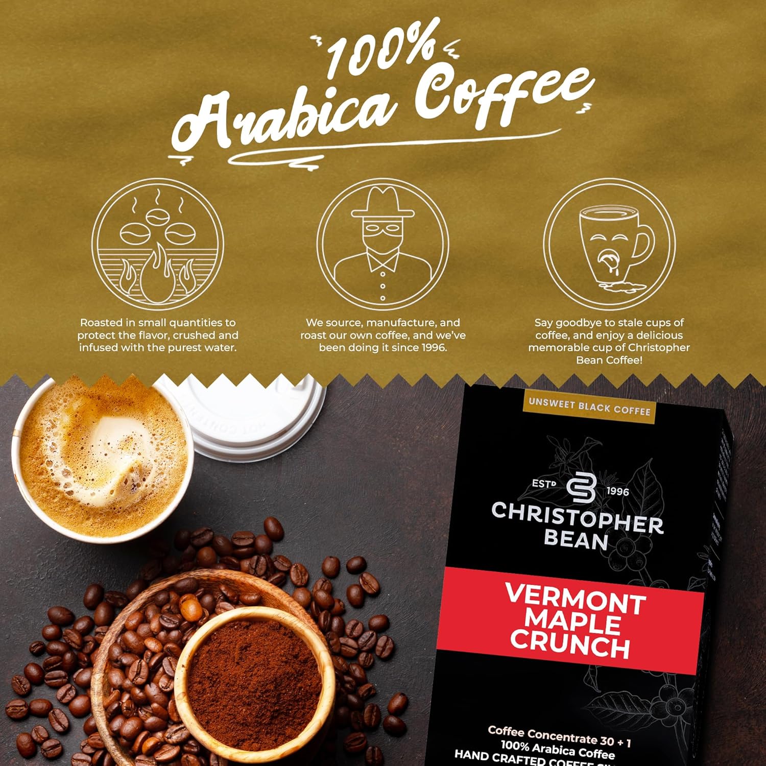 Christopher Bean Coffee - 396 servings, 30 to 1 Blend Bag in Box Liquid Instant Coffee or Cold Brew Coffee Concentrate - Hot or Iced Coffee - Vermont Maple