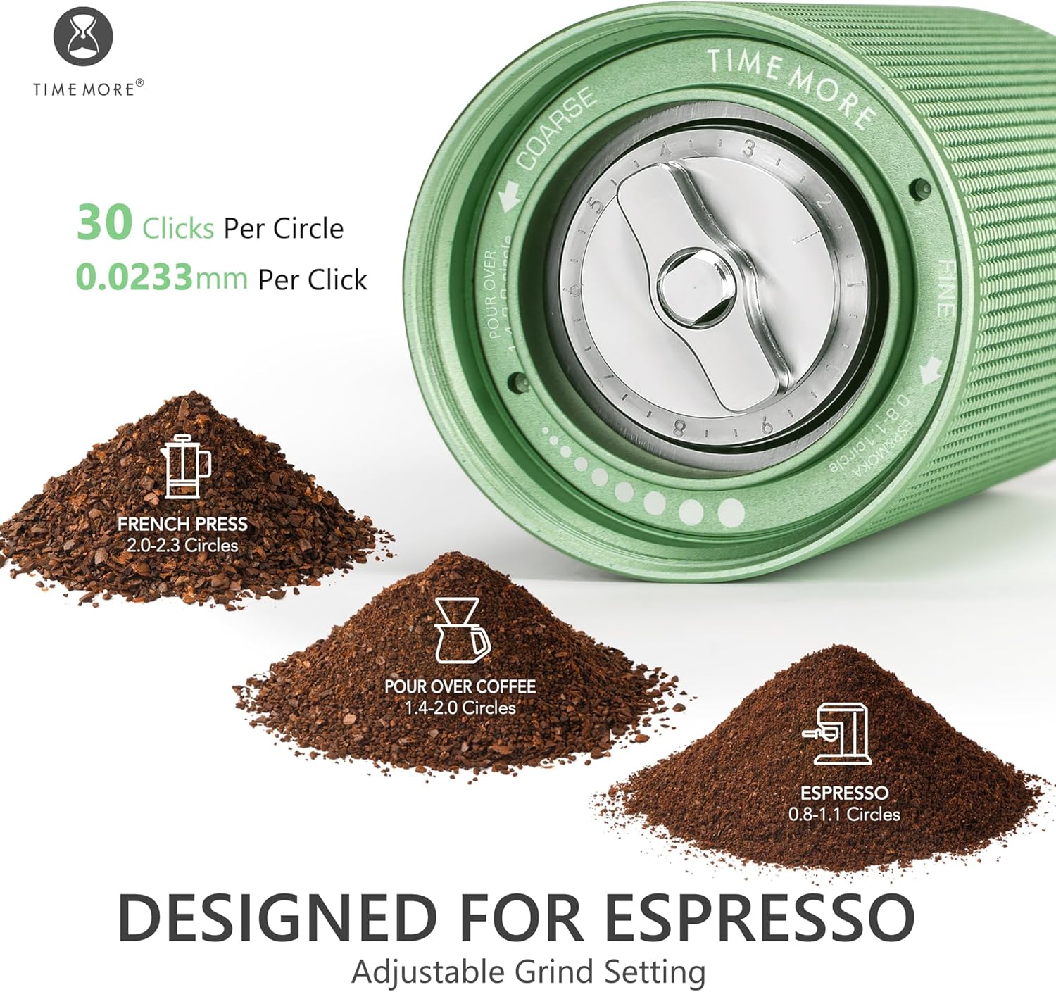 - ADJUSTABLE GRIND SETTING - With stepless grinding adjustment, our manual coffee grinder allows you to easily achieve the perfect coarseness for your preferred brewing method. Whether you're making French Press, Pour Over Coffee, or Espresso, TIMEMORE has you covered.