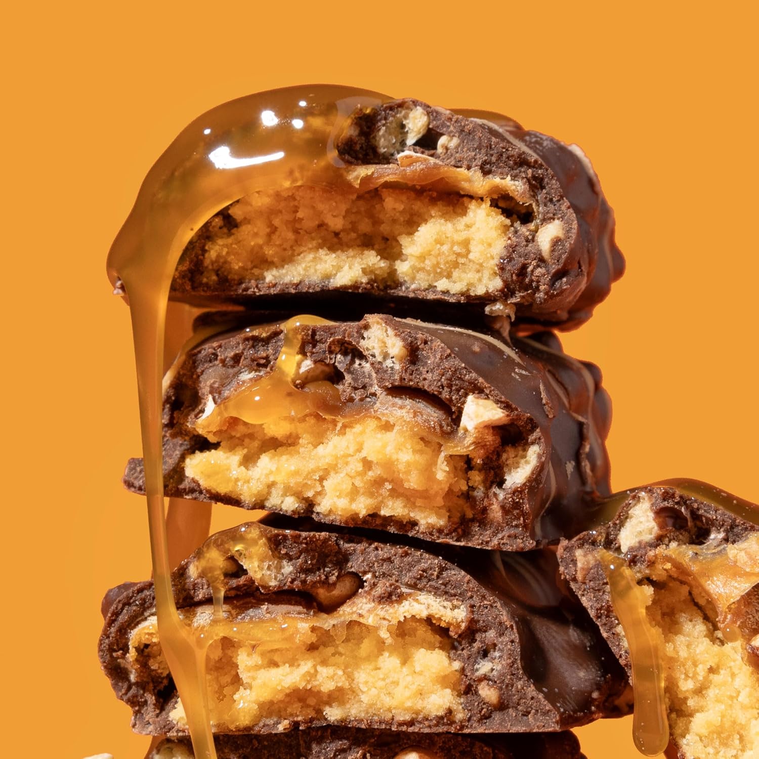FITCRUNCH Snack Size Protein Bars, 6-Layer Baked Bar, 3g of Sugar, Gluten Free & Soft Cake Core (9 Bars, Caramel Peanut)