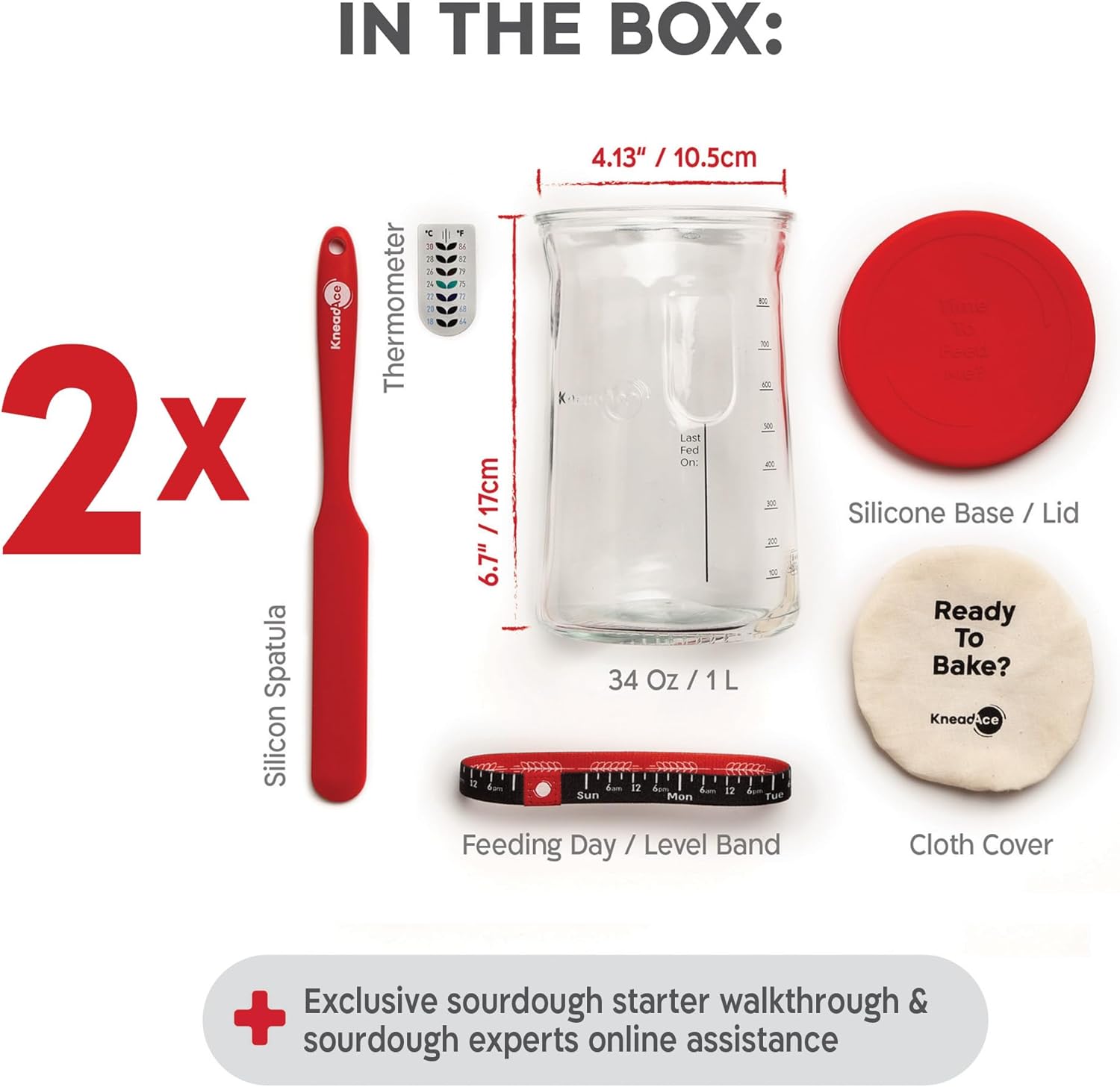 - Essential Addition To Your Bread Making Tools & Supplies - This sourdough jar kit comes complete with volume, net weight & feed line marks, thermometer, cloth cover, silicone cover/base & spatula.