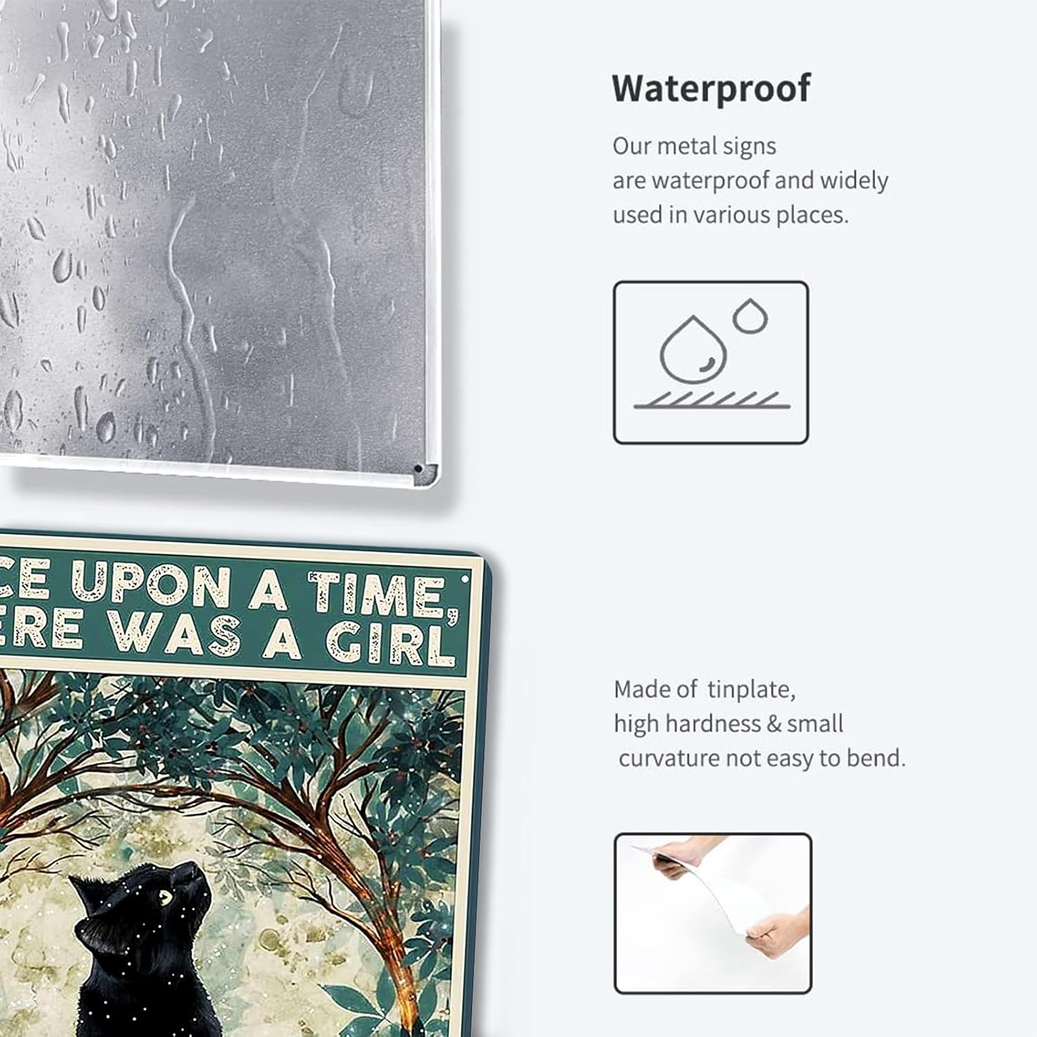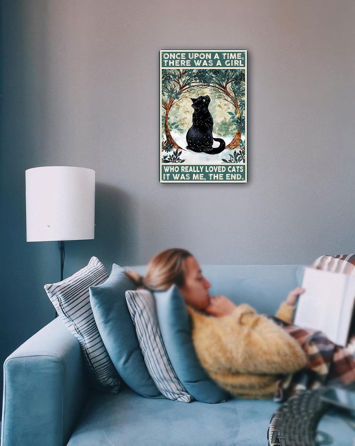 Fmcmly Black Cat Decor Tin Signs Once Upon a Time There was a Girl Who Really Loved Cats Personalized Metal Art Poster Gift For Women And Girl Home Kitchen Bedroom Garden Coffee Wall Decor 8x12 Inch