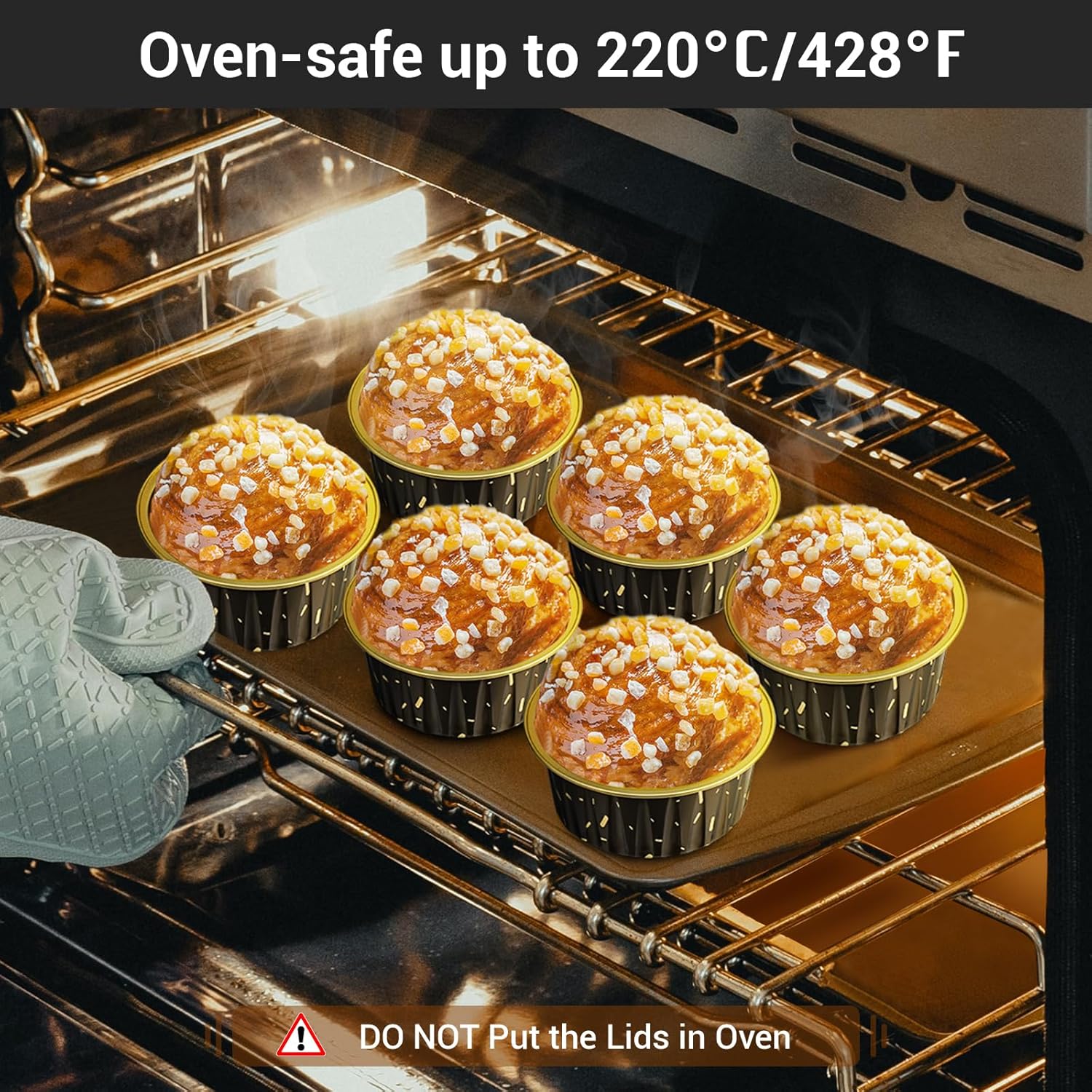 - 【Sturdy Aluminum Foil】-Made from thick sturdy aluminum foil, make our ramekin cups with smoother surface and faster heating,better than using regular baking cups.
