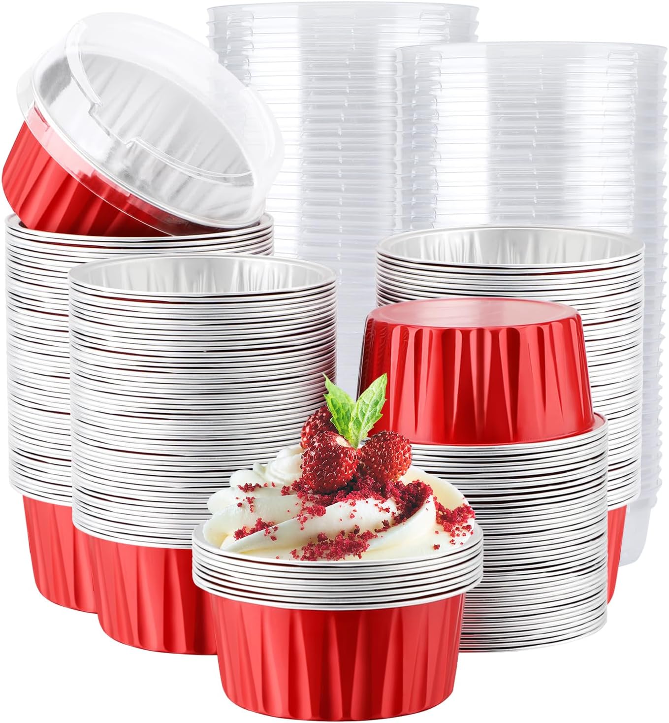 EUSOAR Mini Cake Pans with Lids, 200pcs 5oz Disposable Foil Cups with Lids for Creme Brulee Flan Cheesecake Dessert, Mini Aluminum Baking Mold Container for Wedding Party Single Serving Holiday