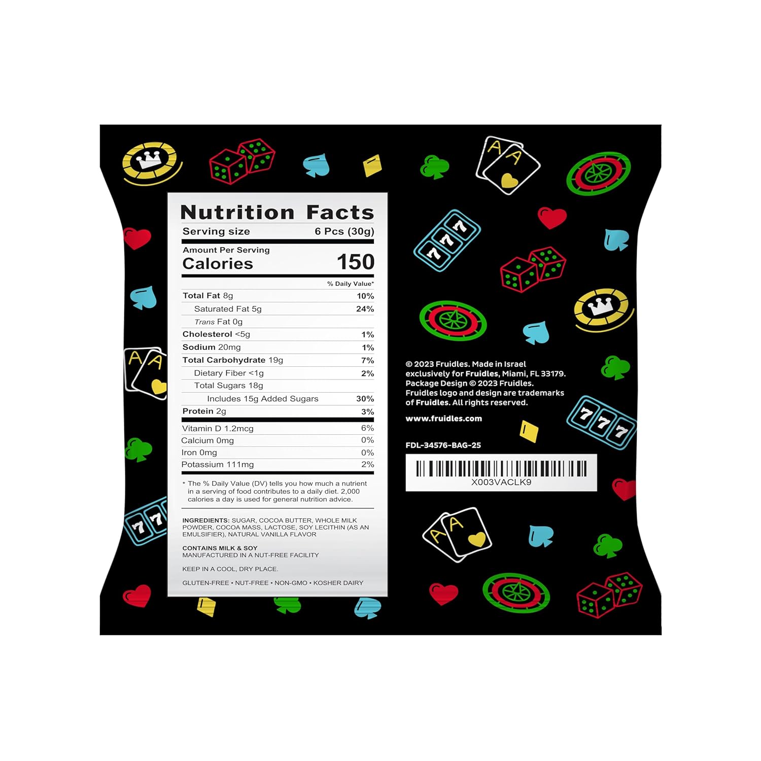Fruidles 25-Pack Casino Poker Chips, Belgian Milk Chocolate Coins, Kosher Certified Dairy, Non GMO