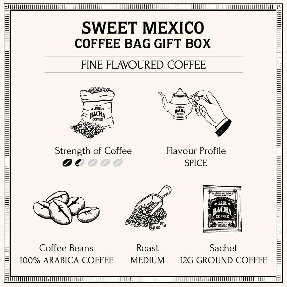 Bacha Coffee | Sweet Mexico Fine Flavoured, Medium Roast, 100% Arabica Specialty Coffee, 12 Coffee Drip Bags, Gift Box