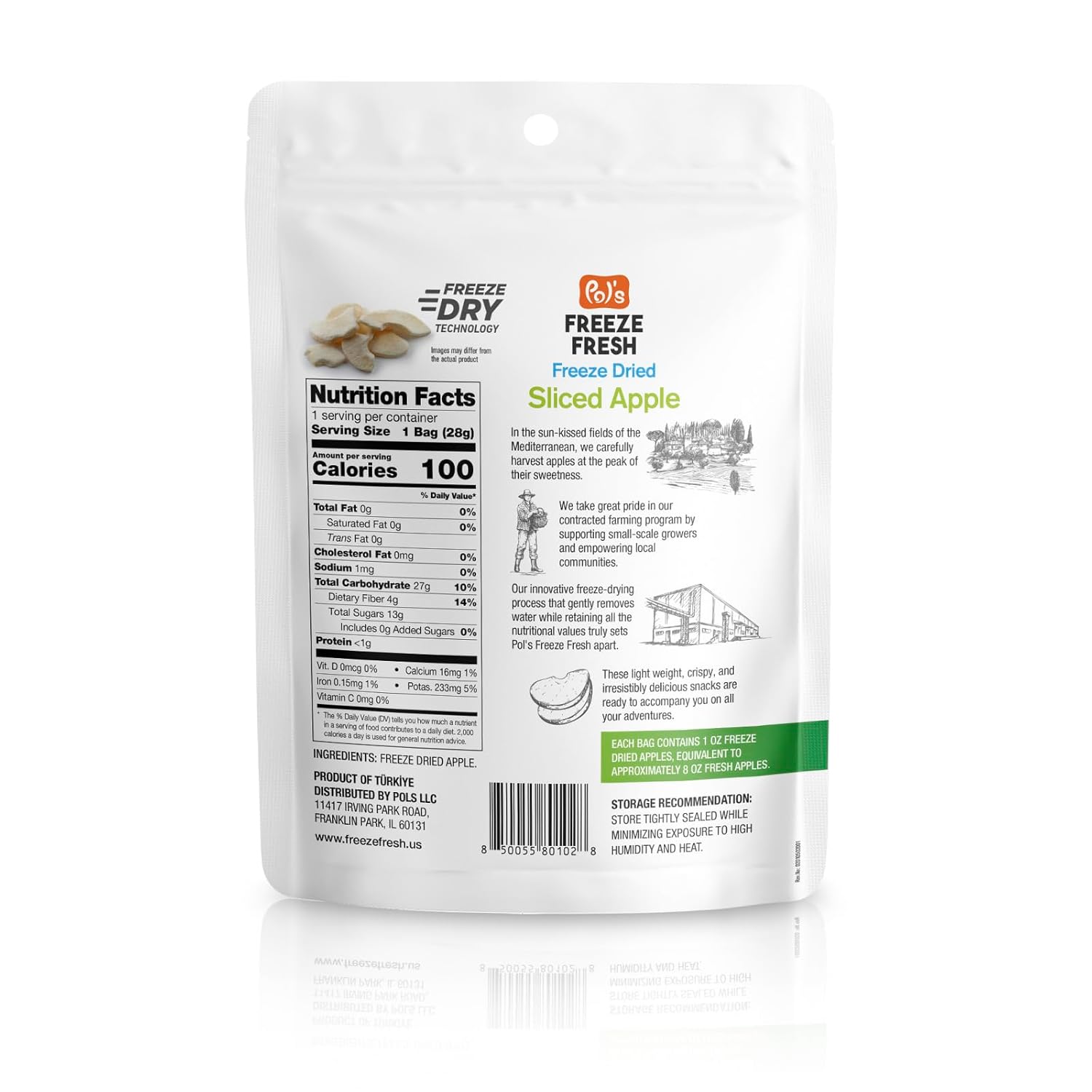 Pol’s Freeze Fresh - 6 Pack Sliced Freeze Dried Apples (1 Oz Each), Non-GMO, Kosher, No Added Sugar, Gluten-Free, Vegan, Single-Serve Packs