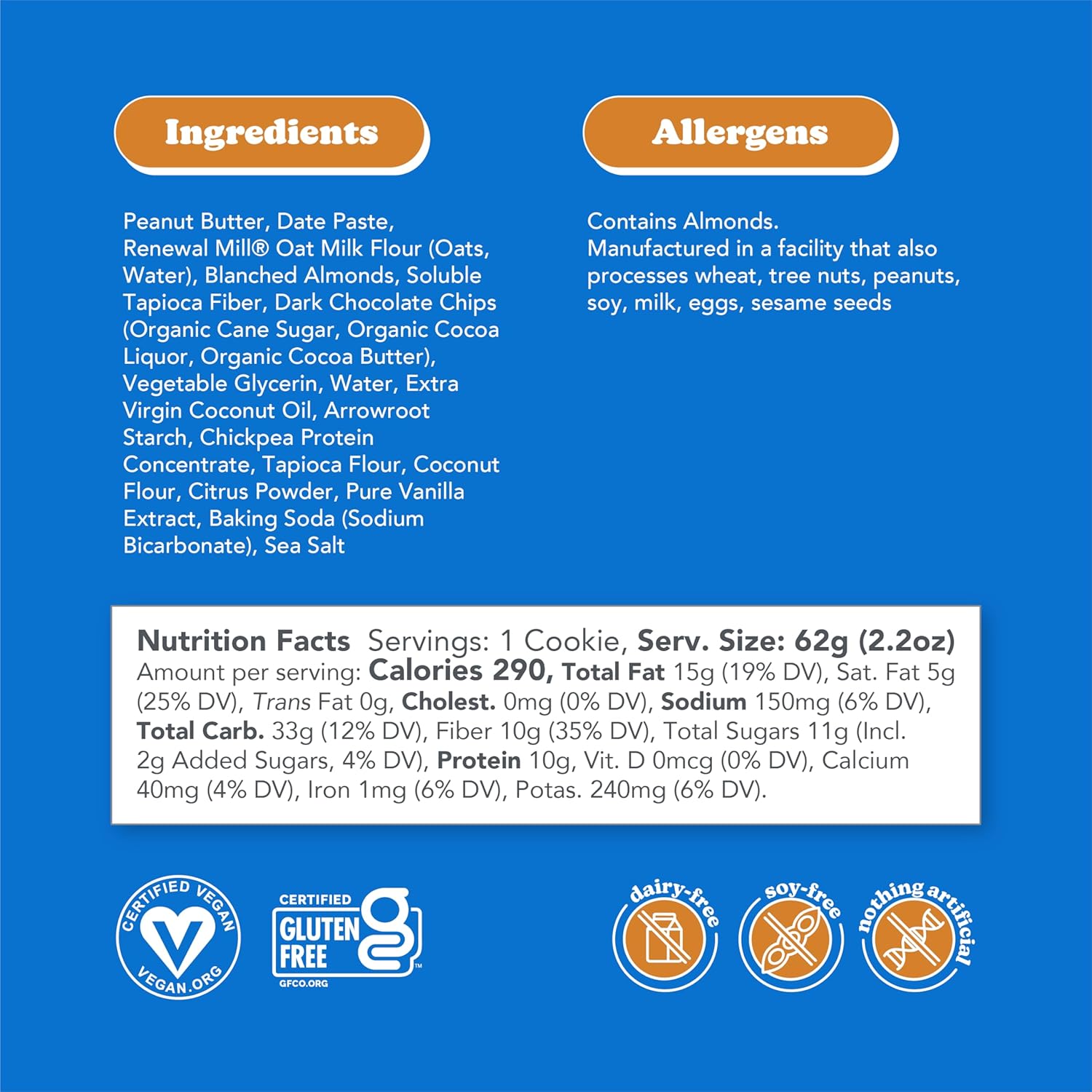 - NO ARTIFICIAL INGREDIENTS: Sweetened primarily with dates and a touch of chocolate chips, these soft-baked cookies contain no artificial flavors, colors, or preservatives. Each bite combines simple, plant-based ingredients for a satisfying, flavorful snack.