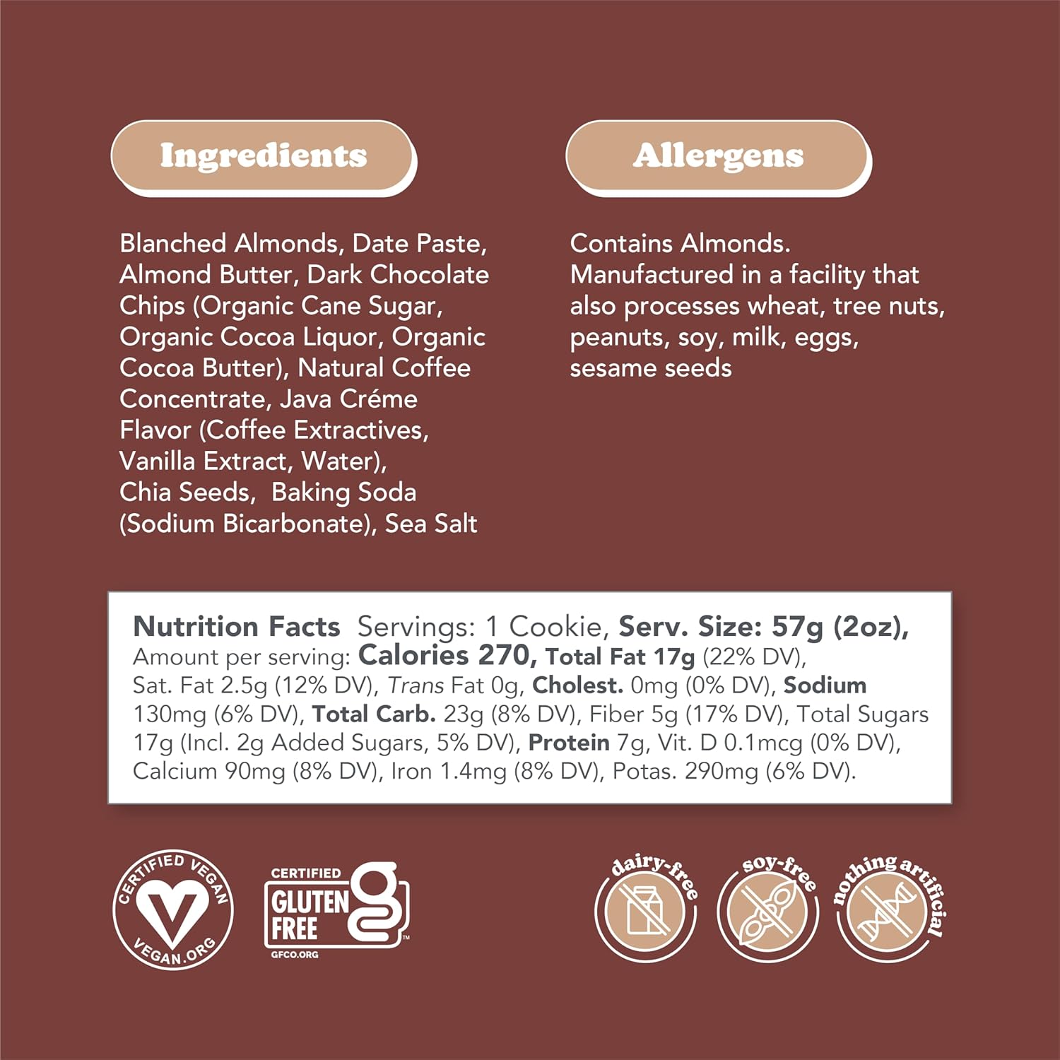 - PLANT BASED PROTEIN COOKIES: Each soft-baked cookie delivers 7-10g of plant based protein and fiber, made with blanched almonds, almond butter, dates, and dark chocolate chips for a rich, satisfying texture. It’s a delicious cookie created for mindful snacking and everyday enjoyment.
