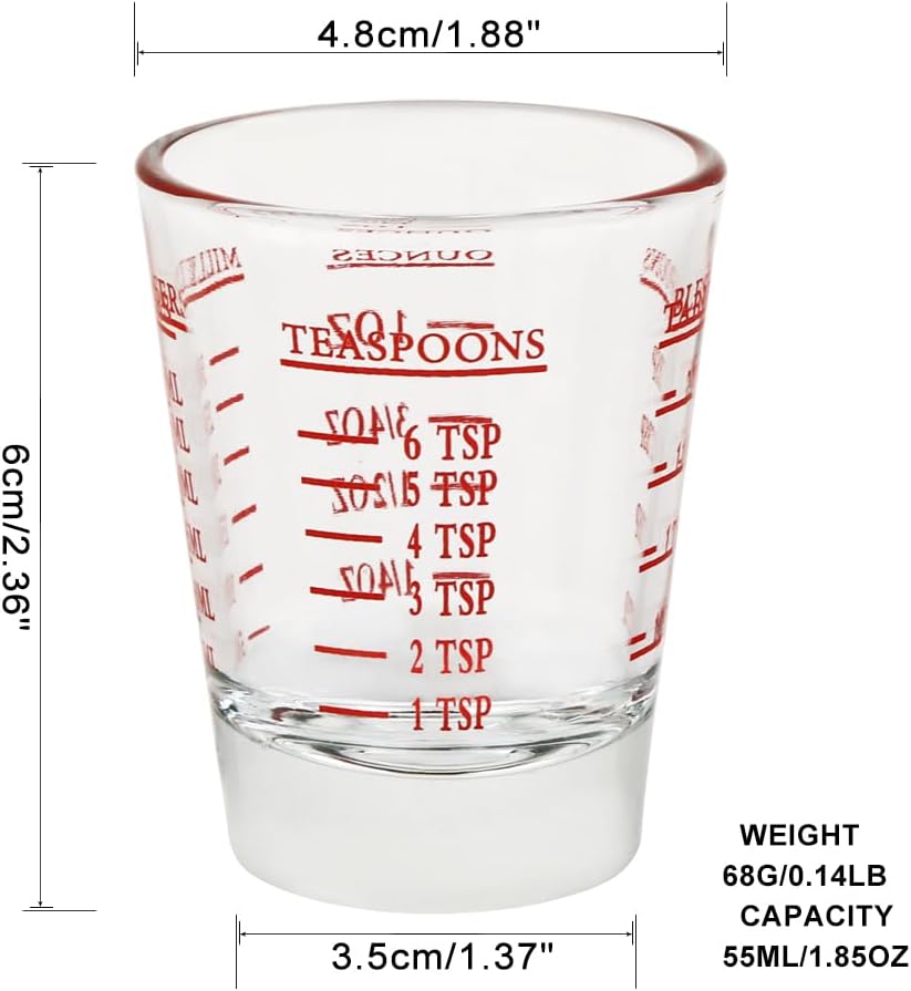 Set of 6 Red Shot Glasses - Heavy Glass, Perfect for Measuring Espresso, Wine, and More 26-Incremental Measurement 1oz, 6 Tsp, 2 Tbs, 30ml (6, Red)