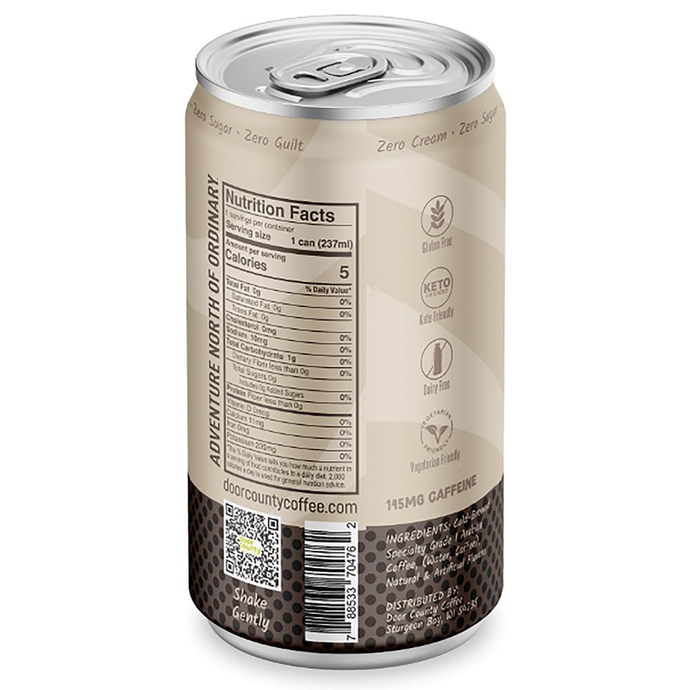 Door County Coffee Vanilla Bean Ready to Drink Canned Cold Brew - 8oz - 6 Pack - Cold Pressed Coffee, 5 Calories, Bold & Rich, Flavorful, 145mg Natural Caffeine