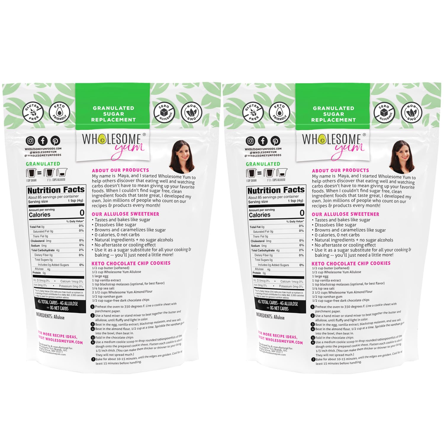 Wholesome Yum Allulose Sweetener - Natural Granulated Sugar Substitute - Keto, Non GMO, Zero Carb, Zero Calorie, Sugar Free, No Aftertaste, Tummy Friendly - Granular Sugar Replacement (12 oz, 2 Pack)