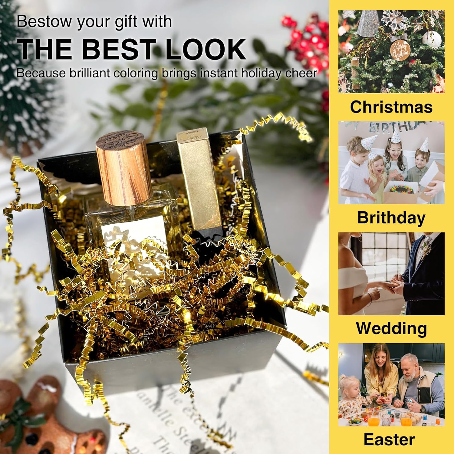 - Widely Use: This is the ideal shredded paper for gift baskets, packing, shipping, and lining delicate.Whether it's an anniversary christmas, wedding, birthday or other party, our crinkle cut paper shred filler is the best choice for your gifts.