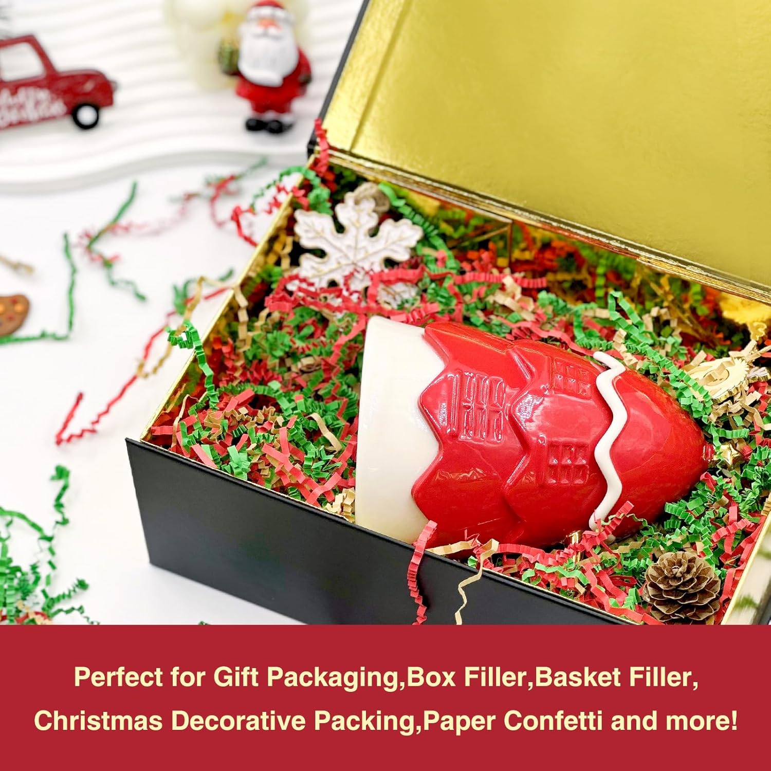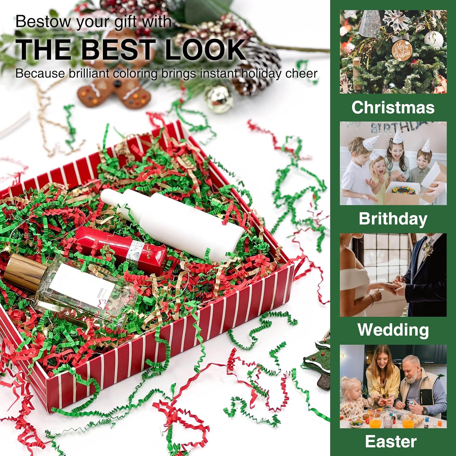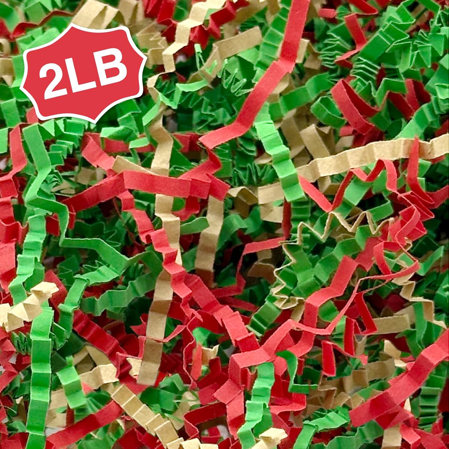 2LB Crinkle Cut Paper Shred Filler for Bag Gift Box Basket Confetti Paper Shreded Stuffing on Christmas Day Holiday(Green&Red&Kraft)