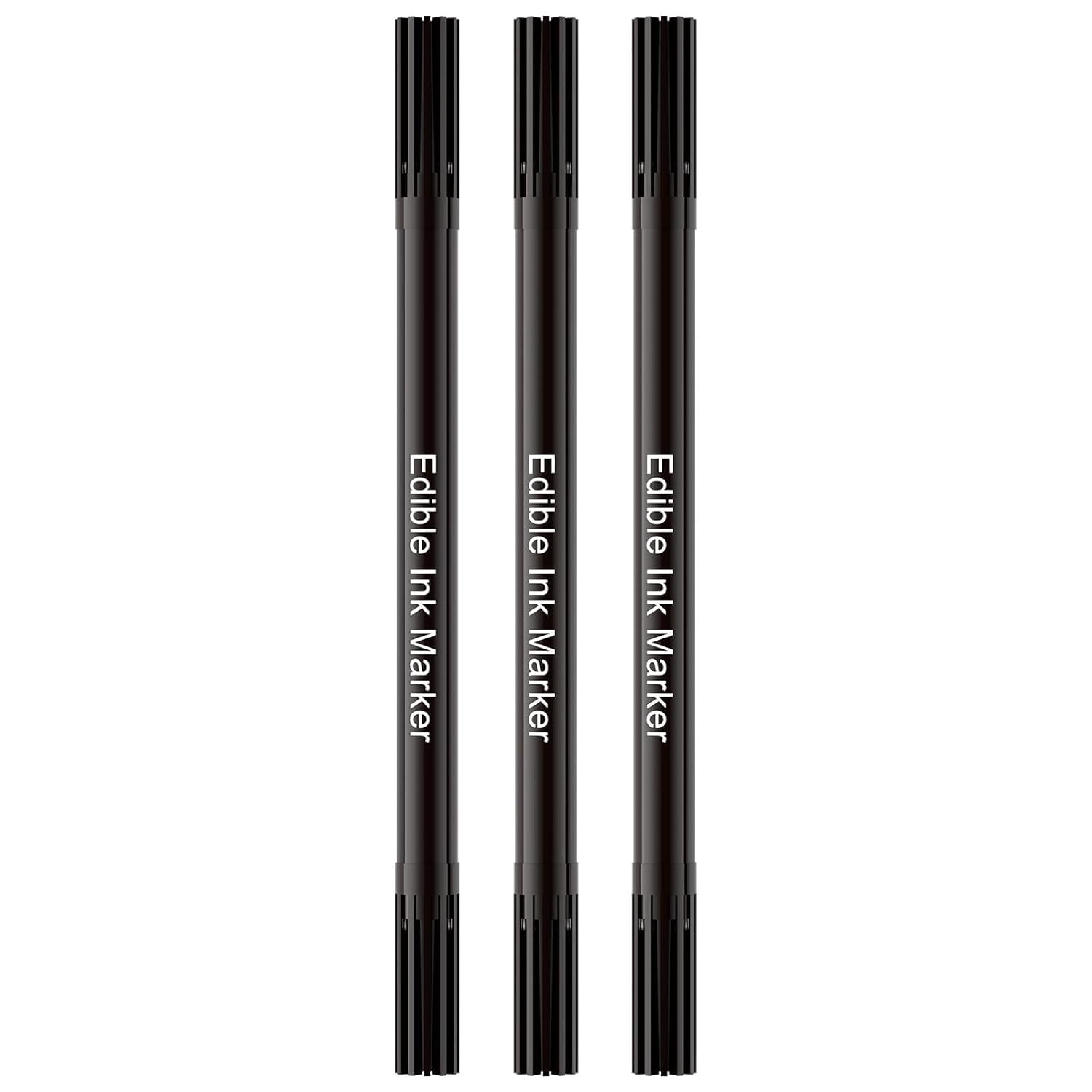 Edible Markers for Cookie Decorating, Food Coloring Marker, Upgrade Double Side Food Grade Pens for Decorating Fondant Cakes, Easter Eggs, Macaron, Frosting (3 Black Count(Pack of 1))