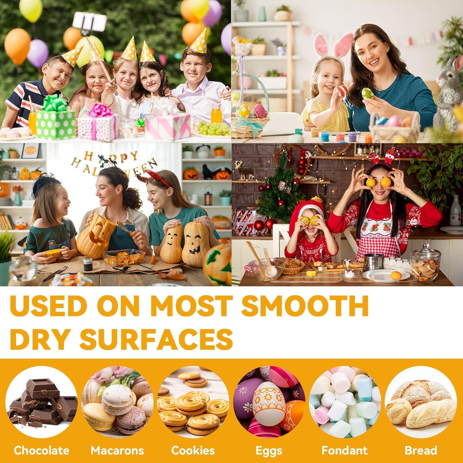- 【Widely Use】These food coloring pens can be used on baked/cooked goods with harder surfaces. As long as the surface is hard (sugar cookie,gingerbread,hard boiled eggs,or similar items work best) and has a white or light color, they can go to town with creating personalized designs.