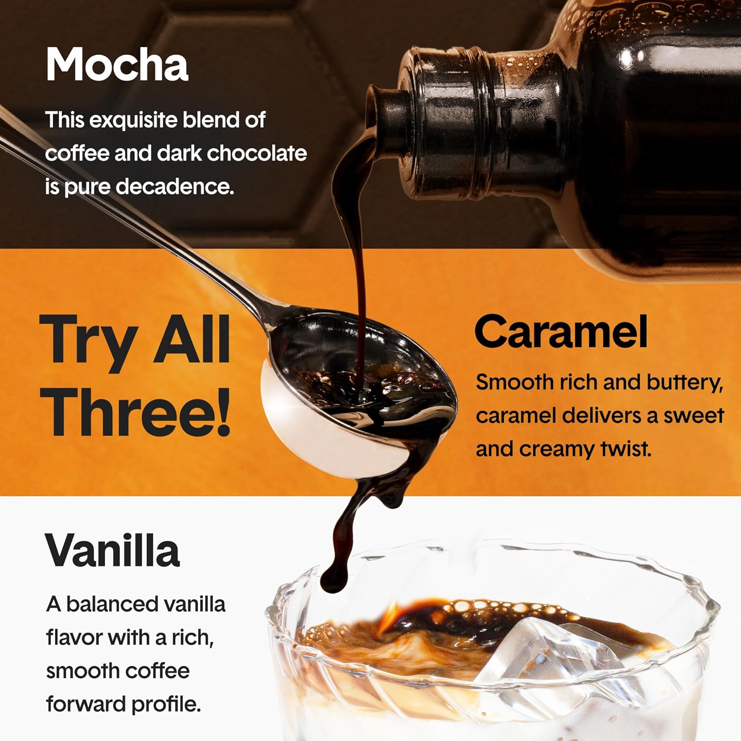 - Flavor : Trio (Caramel/Mocha/Vanilla)