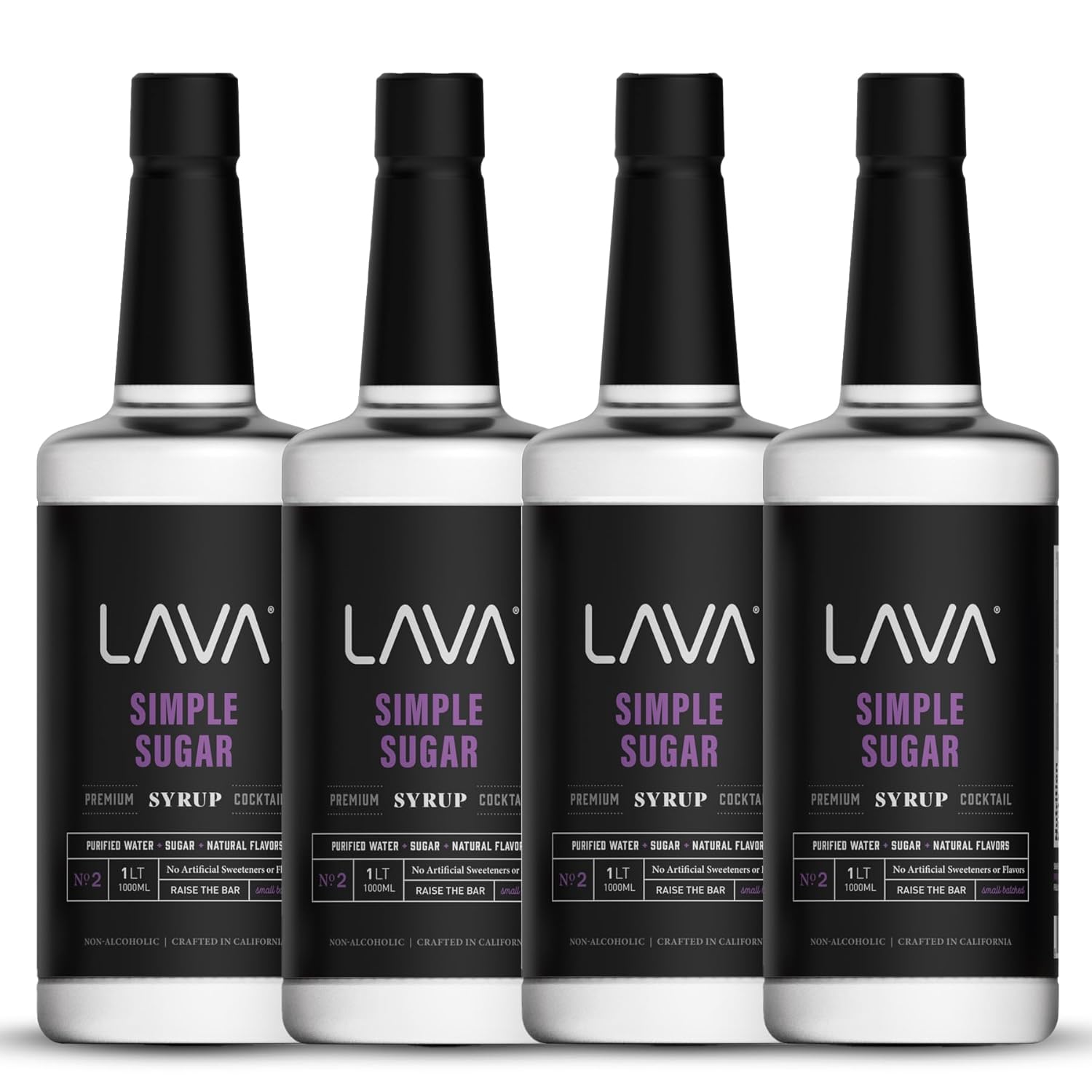 (4-Pack) LAVA Premium Simple Syrup for Cocktails, 33.8oz (1-Liter) Made with 100% Sugar, No Artificial Sweeteners, Flavors, or Colors