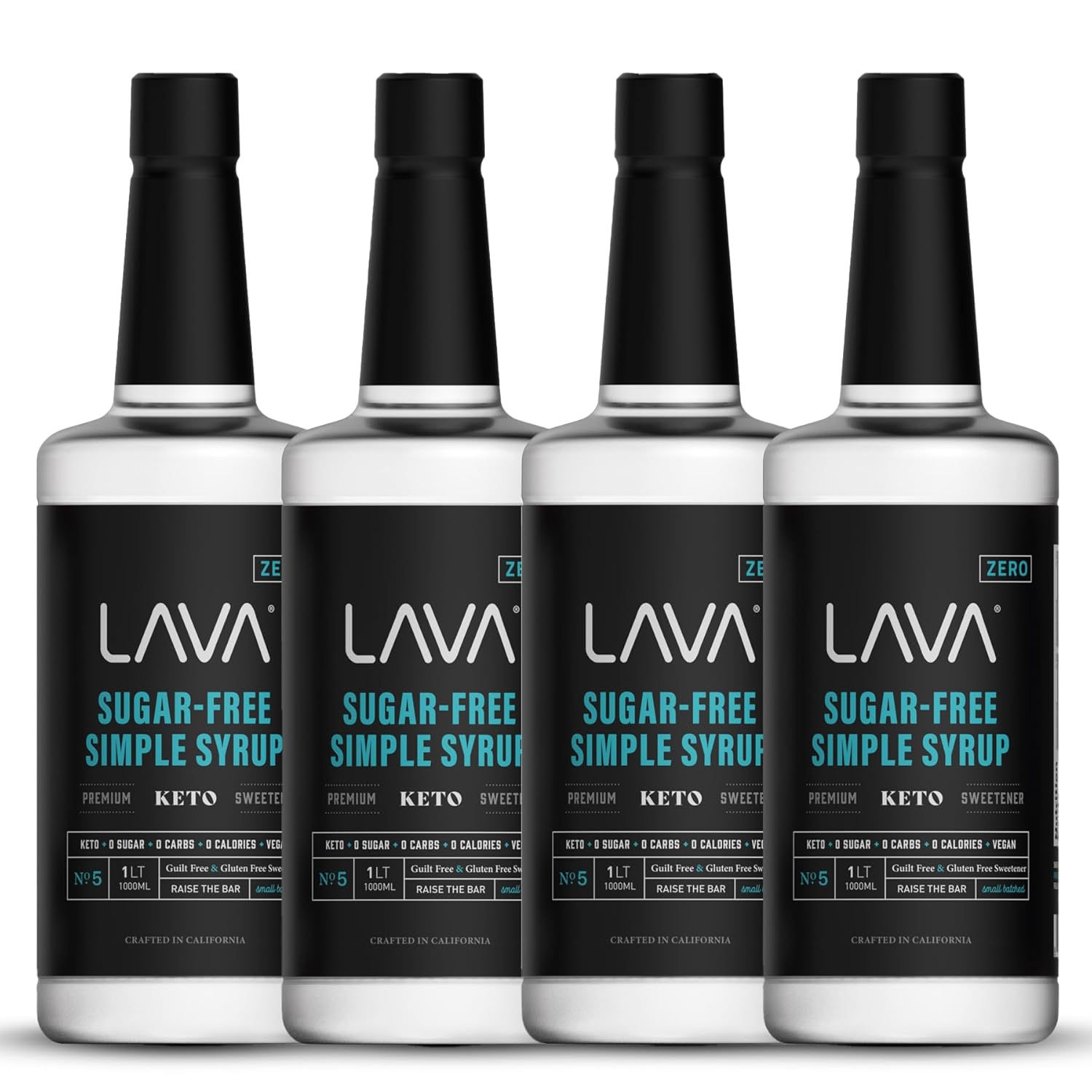 (4-Pack) LAVA Premium SUGAR FREE Simple Syrup, Keto Friendly, Zero Calorie, Zero Sugar, Zero Carb, Sugar Substitute Sweetener, 33.8oz 1-Liter